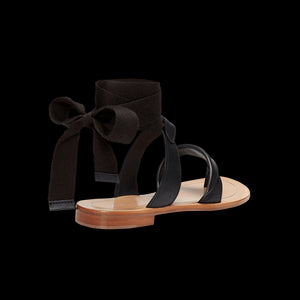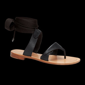 Handcrafted in Italy’s Amalfi Coast, the Grear is an elegant lace-up sandal in black vachetta leather. Featuring soft cotton straps that can be tied in the classic Grecian style, these shoes are casually chic. Elevate and complement every breezy outfit of the summer with the Grear.