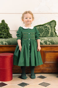 Antoinette Paris creates elegant, handmade garments for little girls, designed in Paris with sophisticated, refined, and exclusive “Haute Couture” details. Their collections include dresses, dungarees, and bubbles, available from birth to 10 years old, made for any occasion and tailored for a new generation of children. Under the twinkle of holiday lights, the Olympe Green Smocked Christmas Dress embodies timeless elegance. The hand-smocked front yoke features holly-inspired embroidery with golden waves reminiscent of Christmas wreaths, while the Claudine collar with holly embroidery lends a vintage-inspired finish. ¾-length sleeves with smocked cuffs and a buttoned front bring both comfort and charm to winter festivities.