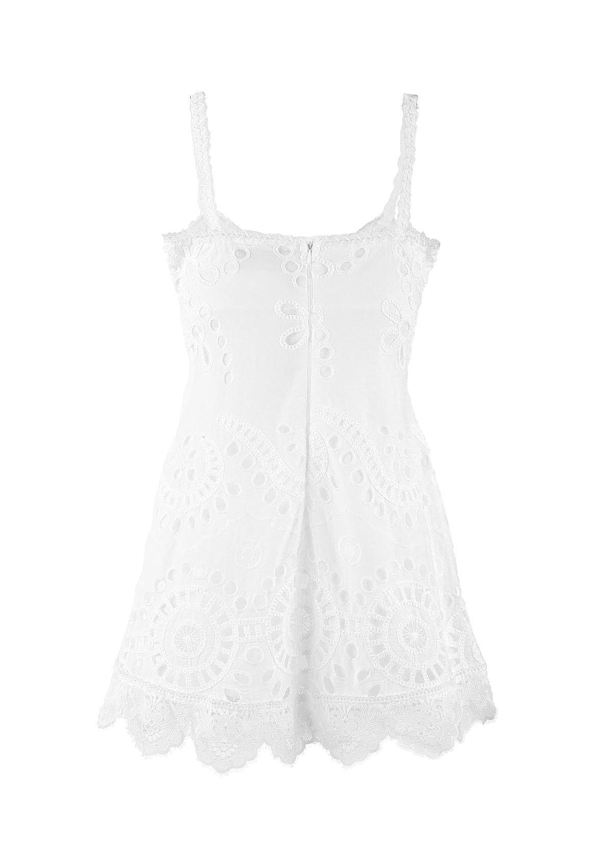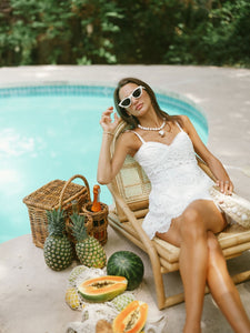 Every WAIMARI piece has a story. Started by two Colombian sisters, the brand is passionate about what goes into their resort wear, embracing the traditions of the local craftspeople they employ and focusing on both the sustainability and quality of their investment pieces. Exclusive to Over The Moon, the Bloom Mini Dress in White is crafted from airy eyelet fabric, offering a fresh take on feminine ease. With its delicate texture and breezy silhouette, this mini is ideal for sunlit getaways, garden parties, or bridal festivities.