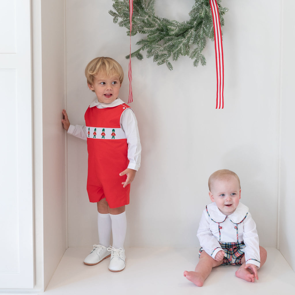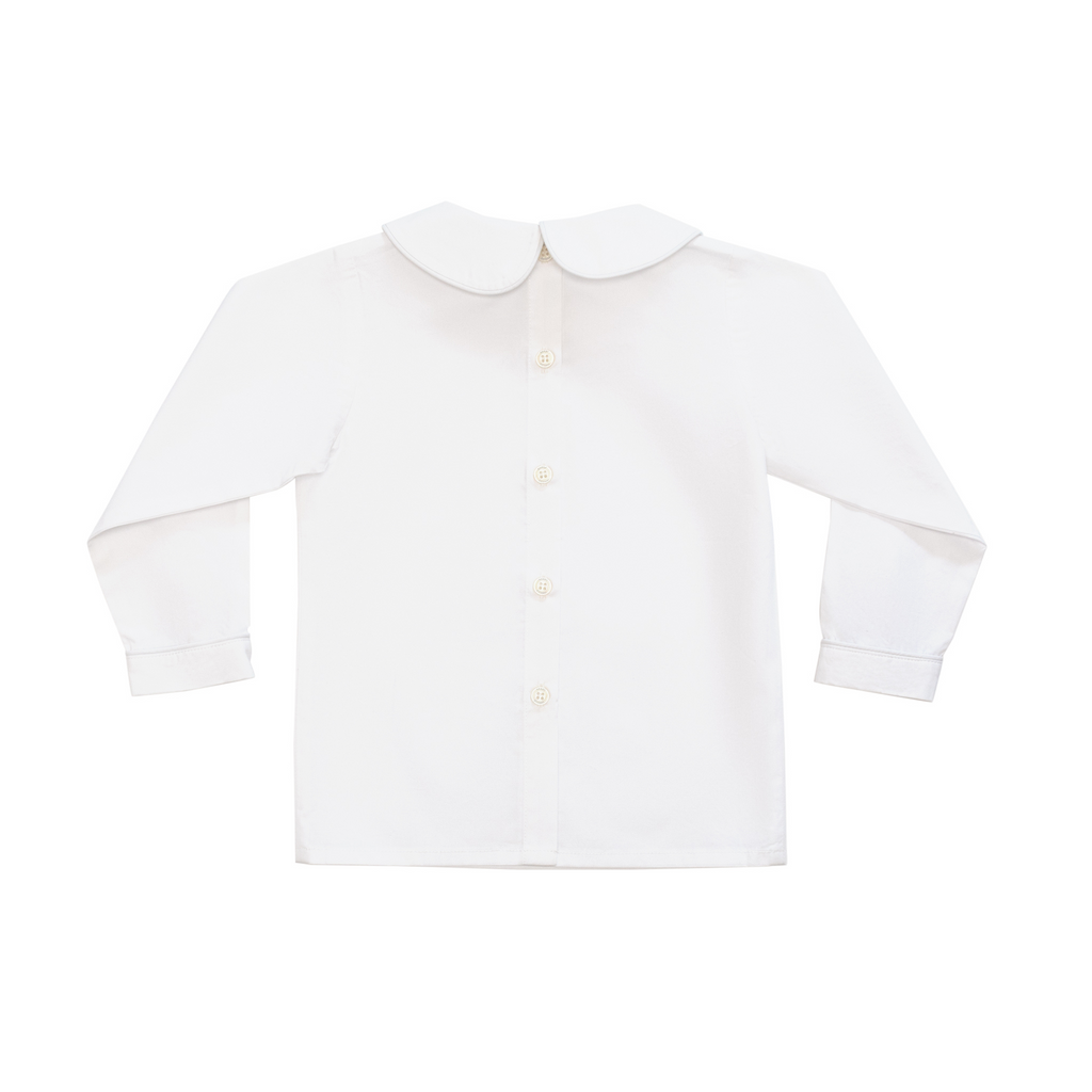 A celebration of the spirit of boyhood, the updated classics from Henry Duvall are curious, imaginative, and sweet. Full of character and playful details, these are easy-to-care-for clothes that families will love. The Long Sleeve Henry Peter Pan in Classic White is a timeless wardrobe essential made to pair effortlessly with Jon Jons, shorts, and all your favorite holiday looks. Crafted in crisp woven cotton and finished with a sweet Peter Pan collar, it layers beautifully under tartan, velvet, or corduroy—an elegant foundation for portraits, family gatherings, and festive occasions alike.