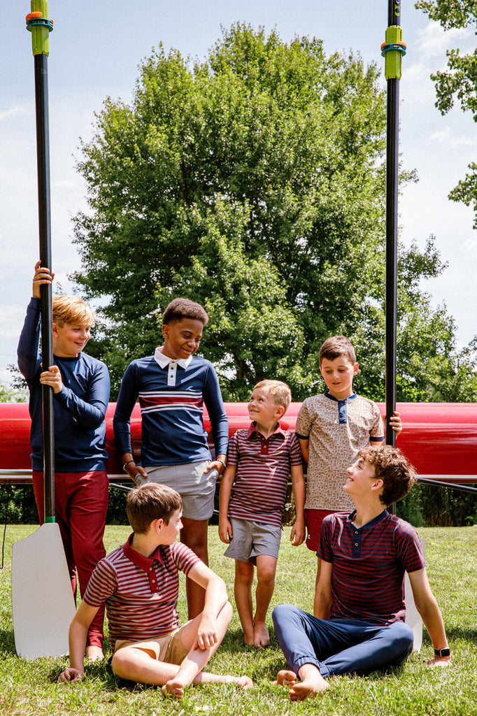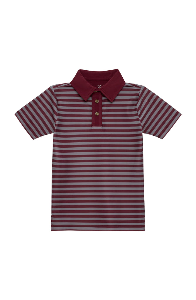 A polished blend of style and sport, Courtside Kids reimagines children’s activewear with performance fabrics, modern tailoring, and a classic athletic sensibility—made for everywhere from the playground to the country club. Introducing the QB Stripe Blade Shirt in Maroon & Gray, the first blade collar designed just for children. Crafted with a sleek, modern twist on the traditional collar, it delivers a polished look that feels effortlessly casual. The cool-touch, wrinkle-resistant, and moisture-wicking fabric ensures comfort and confidence from class to court.