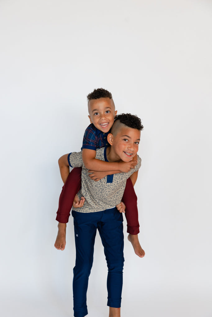 A polished blend of style and sport, Courtside Kids reimagines children’s activewear with performance fabrics, modern tailoring, and a classic athletic sensibility—made for everywhere from the playground to the country club. The Warm-Up Joggers in Navy are the ultimate fall and winter essential, blending buttery-soft comfort with a sleek European fit that hits just above the ankle for a refined look. Crafted from a premium recycled polyester and spandex blend, these versatile joggers move effortlessly from school to sports to dressed-up occasions—and pair easily with a coordinating half-zip or pullover for a complete, ready-to-go outfit.