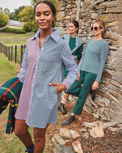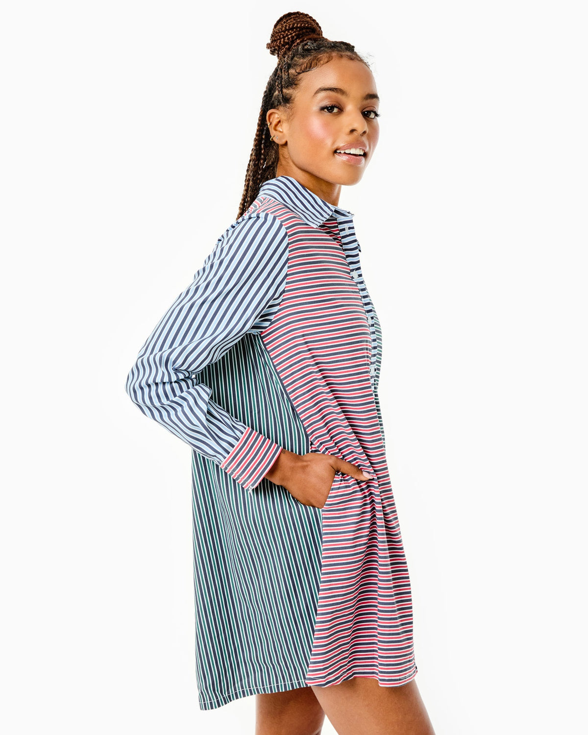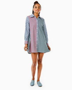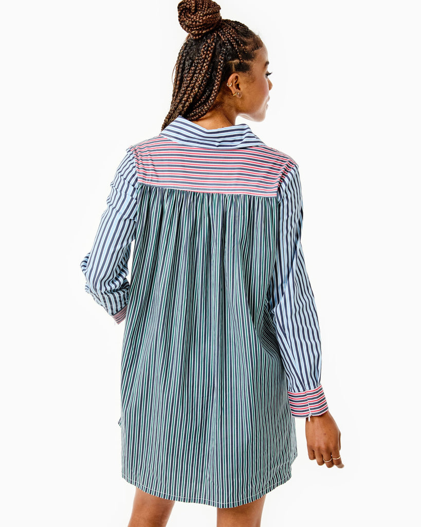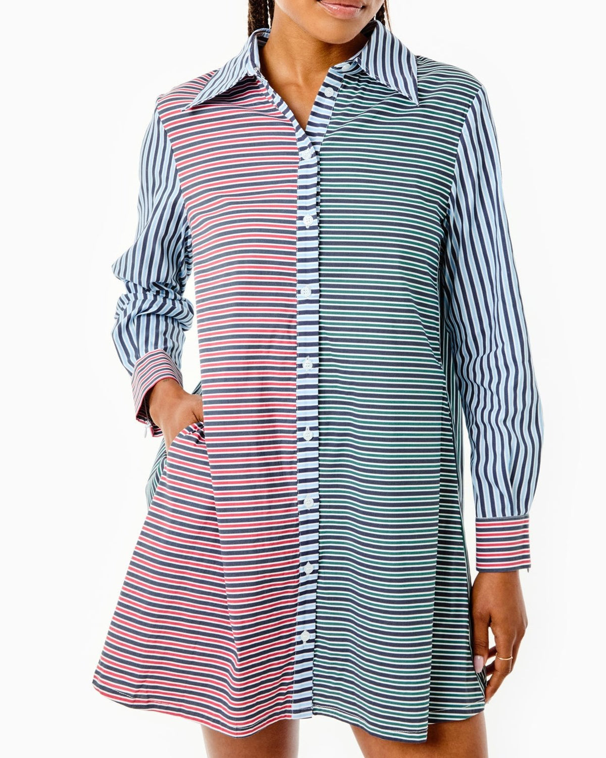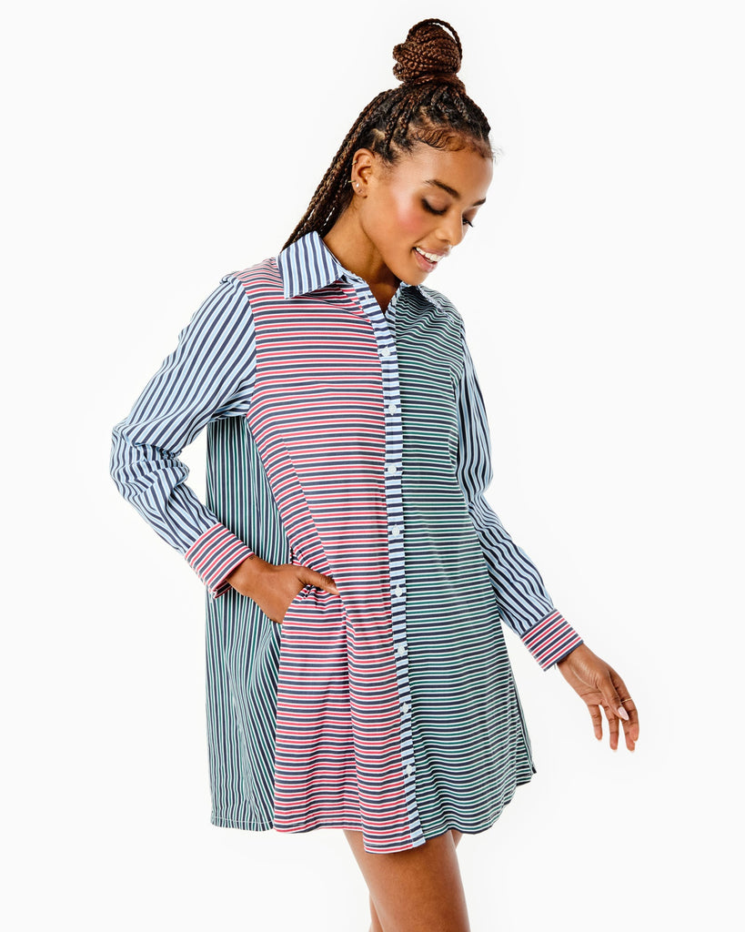 Built for women on the go, by women on the go, Addison Bay’s luxe athletic wear can take you from the gym through your entire day, without ever sacrificing fashion for function. A fun play on a stripes with color-blocking and unique patterns, the Bloom Shirt Dress is a classic front button down featuring pocket and a fun back panel for all-day charm.