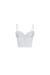 Born in India and raised in New York before eventually working in finance, Natasha Das’s diverse background is at the essence of Danarys New York, a luxury womenswear label that asks its wearer to embrace the strength and fearlessness of their femininity. Crafted in stark white cotton, the Kira Corset Crop Top features a poplin bodice for structure and has all the subtle elegance of a summer classic. We love it with a tasteful skirt or dressed up for a big night.
