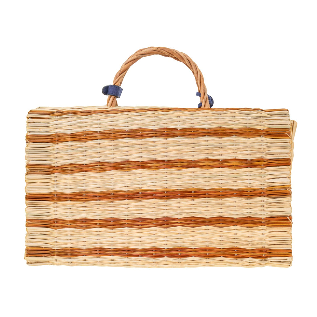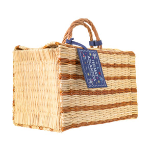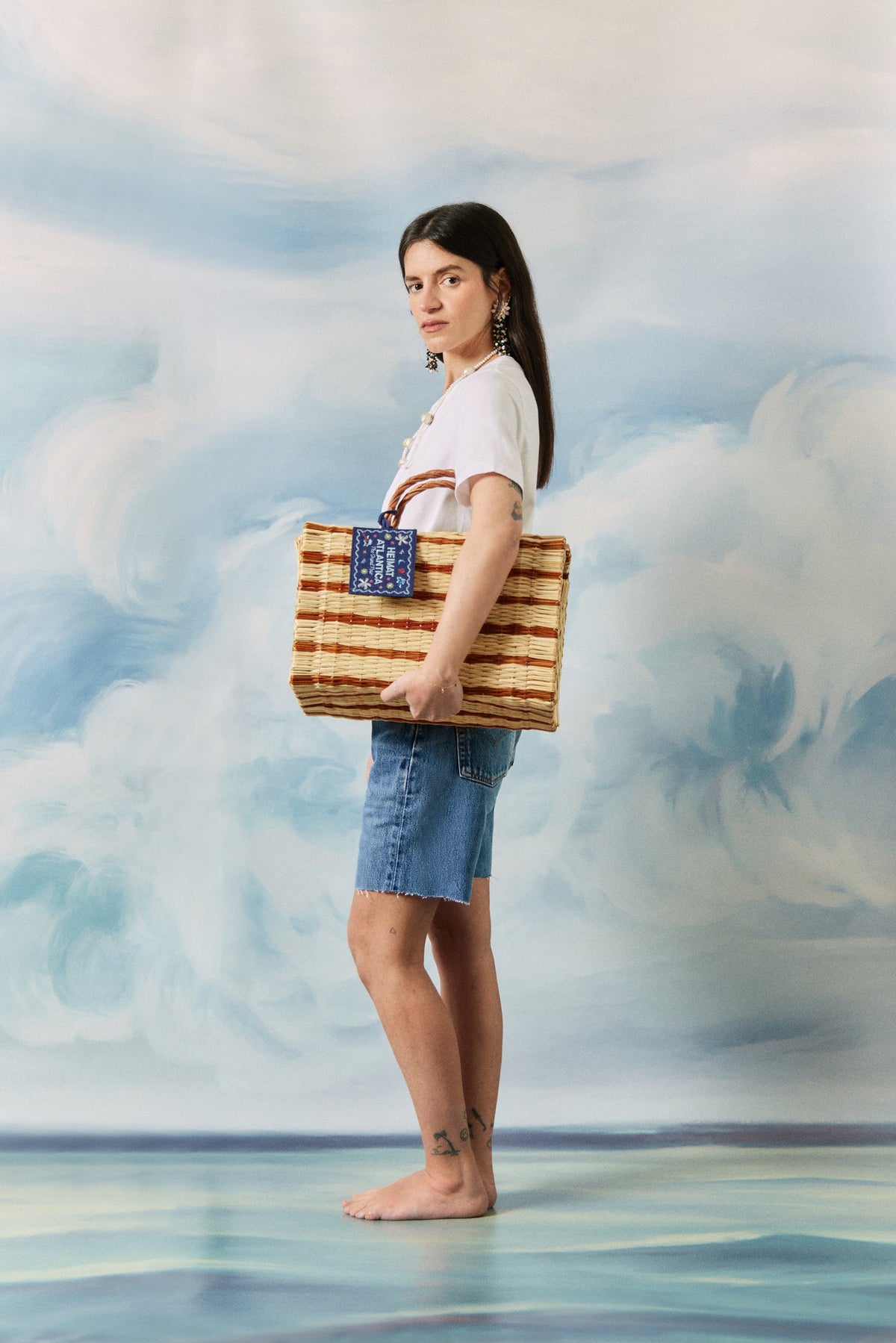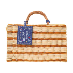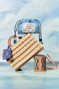 Founder Montserrat Álvarez marries the traditional craftsmanship of coastal Spain and Portugal to a modern sensibility with handwoven reeds, local leatherwork, and porcelain fetiches of the brand’s beach-to-city bags and unique accessories. The “The Grand Tour Collection” Beach Basket in Mustard is a vibrant companion for sun-drenched days and coastal getaways. With a timeless silhouette and practical proportions, it offers ample room for all beachside essentials while adding a bold touch of seasonal color. Handwoven from Portuguese reed in a dyed striped pattern, it embodies Heimat Atlantica’s signature blend of innovation and heritage. Recycled cotton accents and an embroidered denim-effect linen label bring poetic detail, inspired by Galician magical realism and the mythical fish that swims between sea and stars. This limited-edition basket is available only this year.