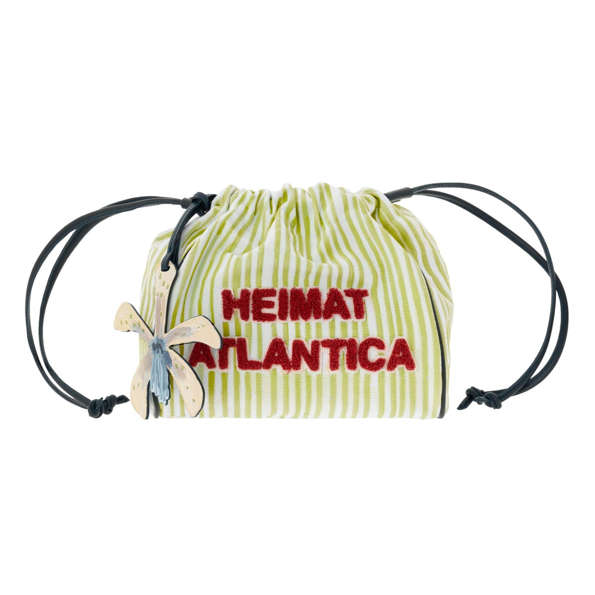 Founder Montserrat Álvarez marries the traditional craftsmanship of coastal Spain and Portugal to a modern sensibility with handwoven reeds, local leatherwork, and porcelain fetiches of the brand’s beach-to-city bags and unique accessories. The “The Grand Tour Collection” Pouch in Hand Painted Lime is a radiant ode to individuality and artisanal artistry. Each pouch is hand-painted in vibrant lime stripes, making every piece truly unique. Designed for sunlit moments and impromptu adventures, this delicately ruffled silhouette is both playful and refined. Made in Spain from cotton and leather, it includes a plaid interior, card slot, and generous space for summer essentials. Finished with a handcrafted orchid leather charm and an embroidered Heimat Atlantica logo in place of the traditional linen patch, this exclusive pouch is available only for the current season.