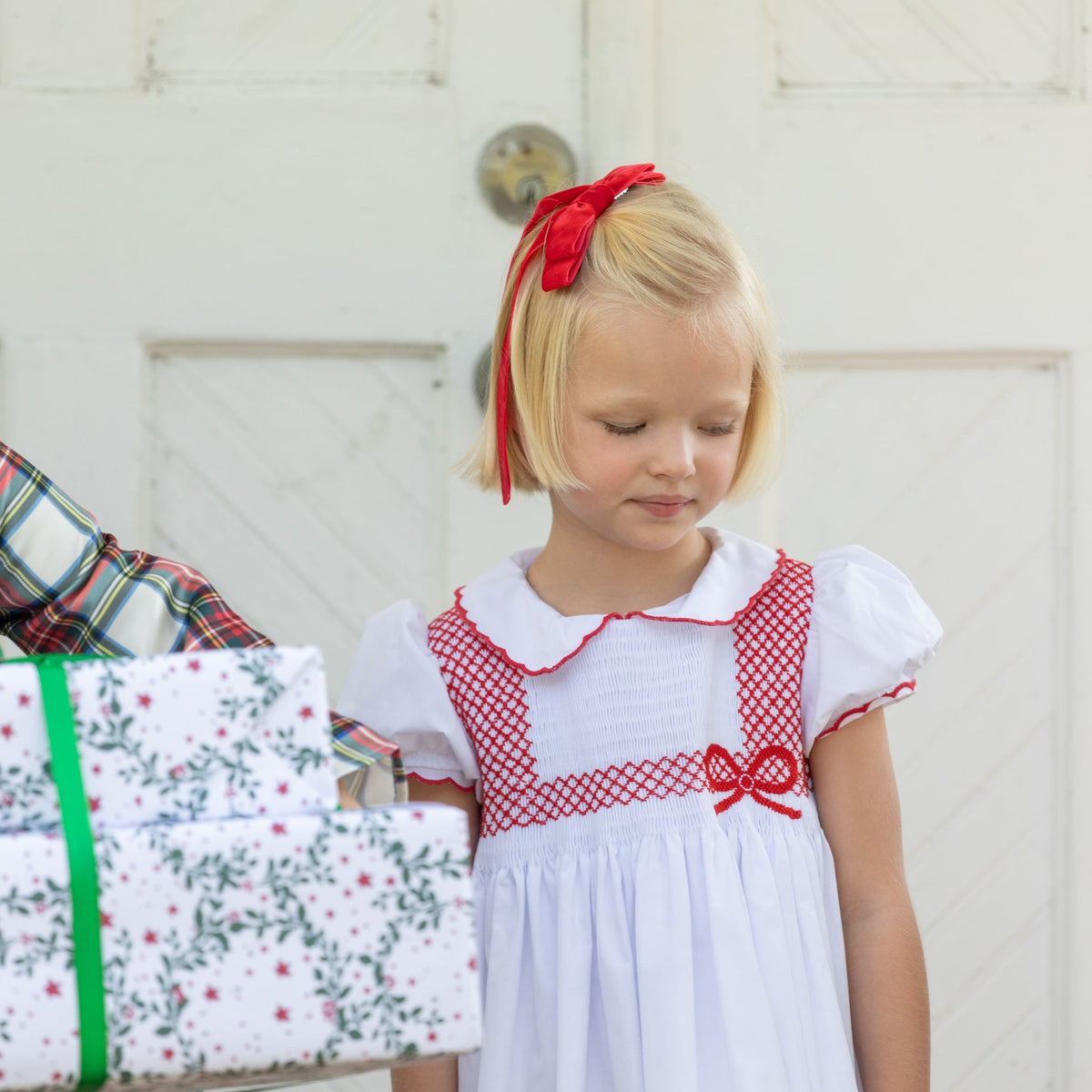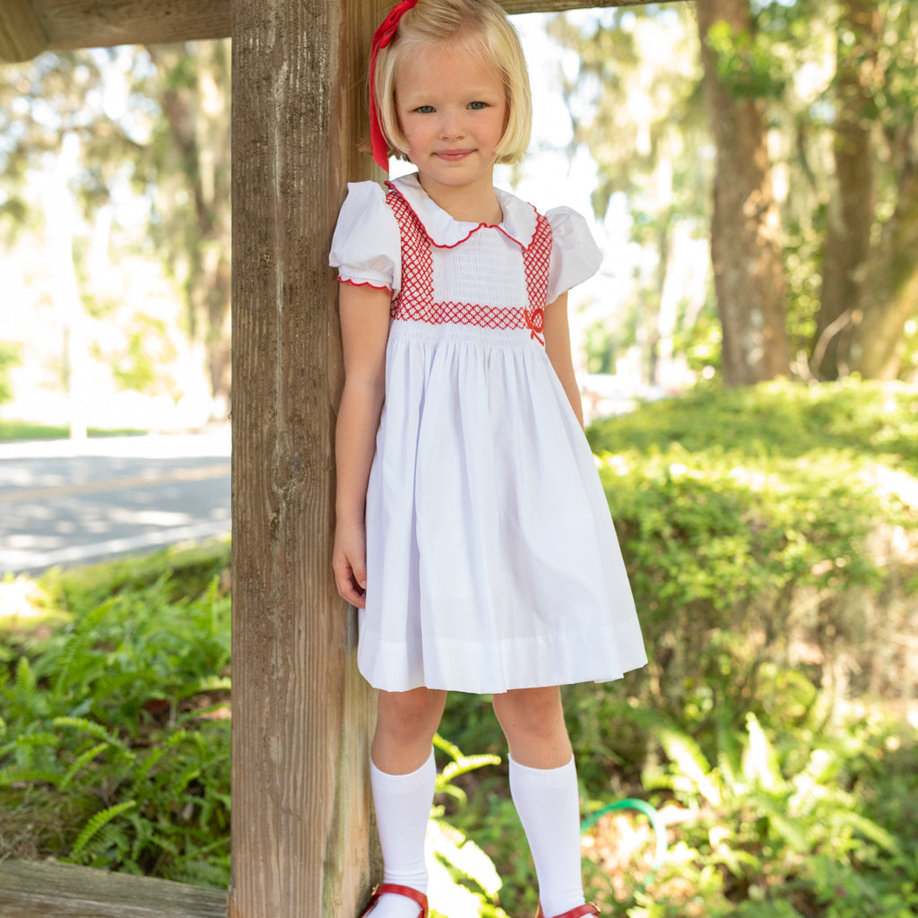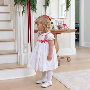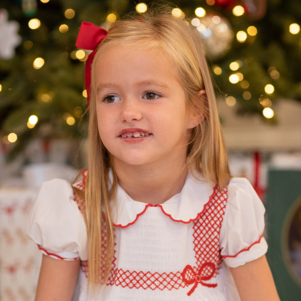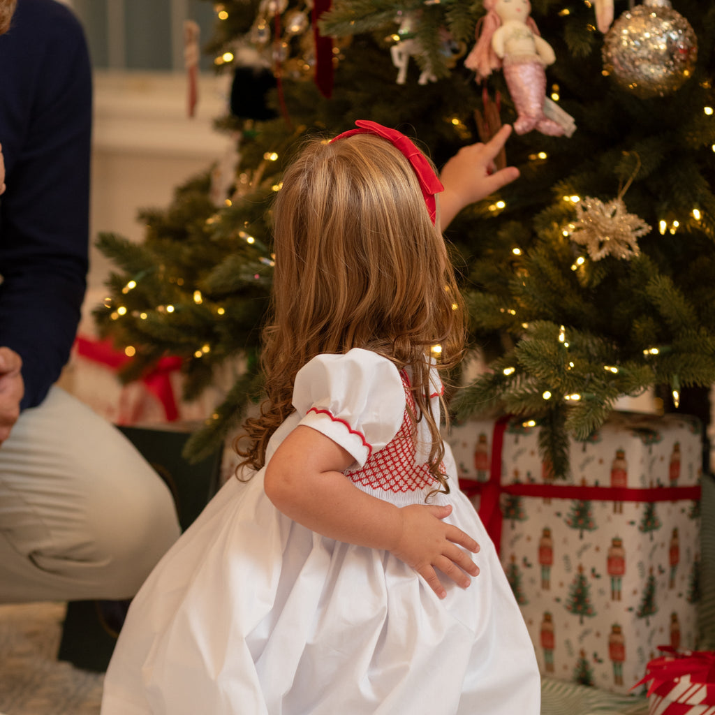 Meet the Eloise Dress—a holiday classic in the making, with heirloom craftsmanship at its heart. Made from crisp white broadcloath, the smocked bodice features delicate hand-embroidery, all wrapped up in a bow. This dress is a love letter to tradition, designed to be passed down from one generation to the next.