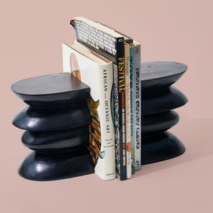 Founded in 2007, Indego Africa is a nonprofit social enterprise propelling the creation, growth, and sustainability of women-owned businesses in Africa. From the fine raffia weaving in their bags to the woodcarving in their homewares, the brand provides women and youth with the vocational skills, business know-how, and pipeline to global markets to become self-sufficient entrepreneurs. Stained using "soot," a Ghanian stain that gives the wood a rich dark color, the Adu Bookends add art and elegance to any shelf, room, or mantle.