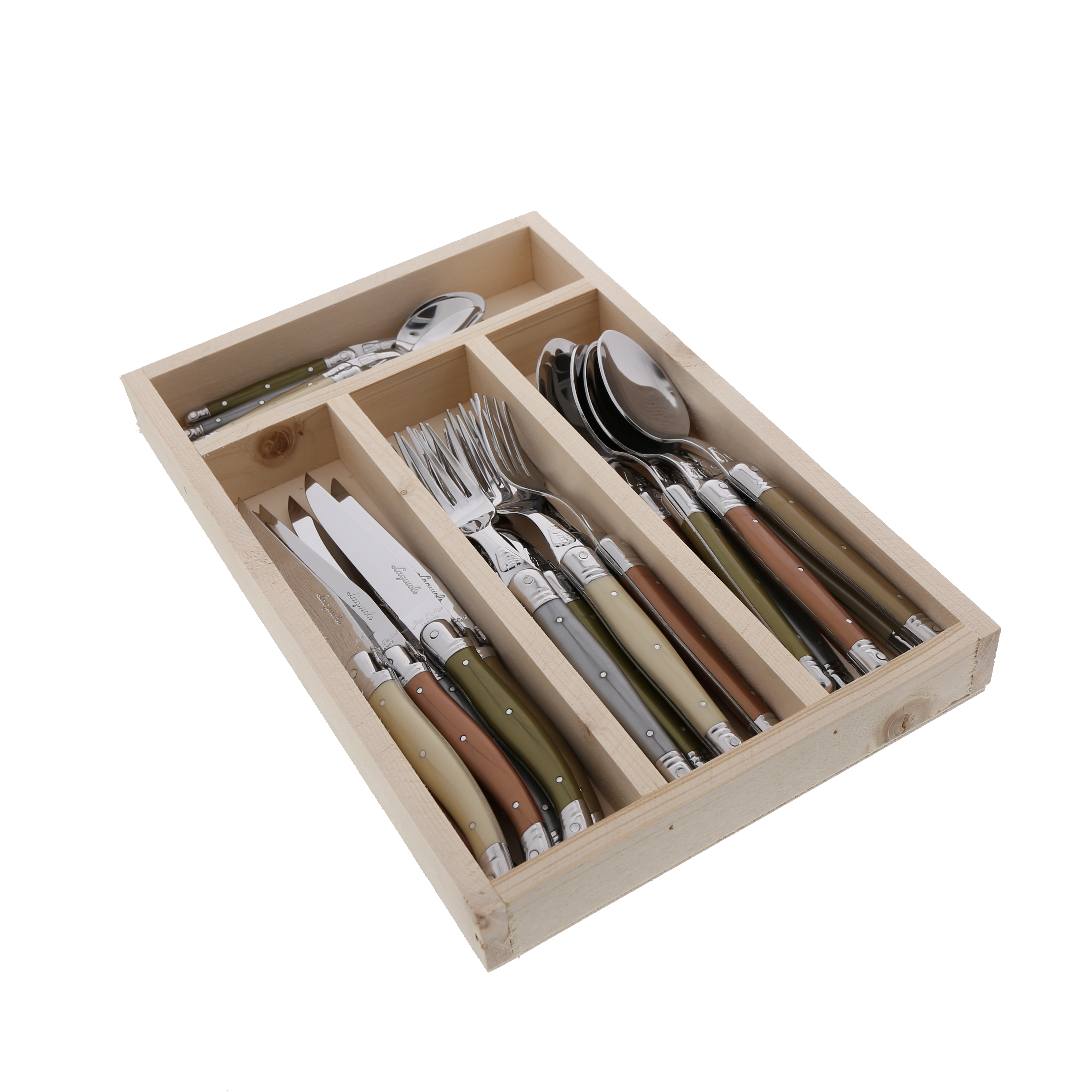 Established in 1920 in Viscomtat—a small mountain village not far from Thiers, the cradle and capital city of French cutlery—Jean Dubost Laguiole is a fourth generation family company that is recognized in France and around for the world for designing and manufacturing a wide range of flatware and knives in an array of candy colors and styles that can be passed down.
