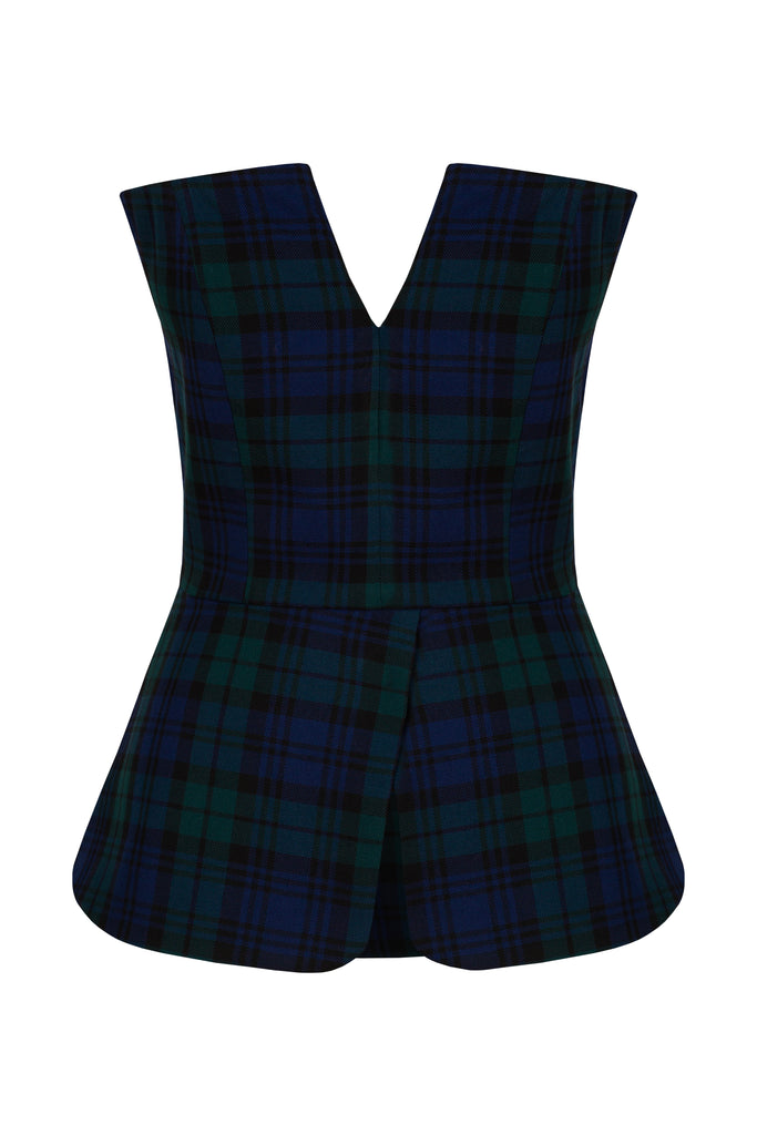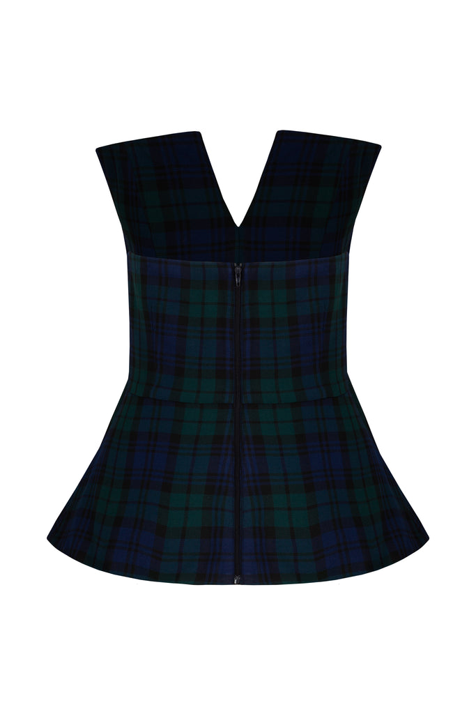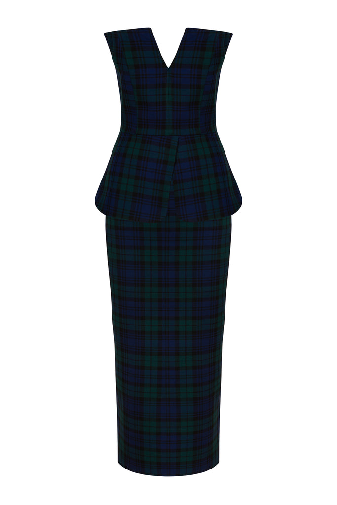 Loulou, founder of Loulou La Dune, extends her refined feminine touch from interior design and tableware into the realm of ready-to-wear fashion—and home entertaining. Recognizing the desire for beautifully crafted, elegant pieces that elevate everyday moments, she designs each collection with an eye for detail and timeless beauty. The Holiday Aria Set in Navy & Green captures the spirit of the season with a classic tartan motif. A part of the Fall/Winter collection, this tailored ensemble features a strapless bustier top and a coordinating pencil skirt—a chic pairing for cozy autumn evenings and festive holiday gatherings.