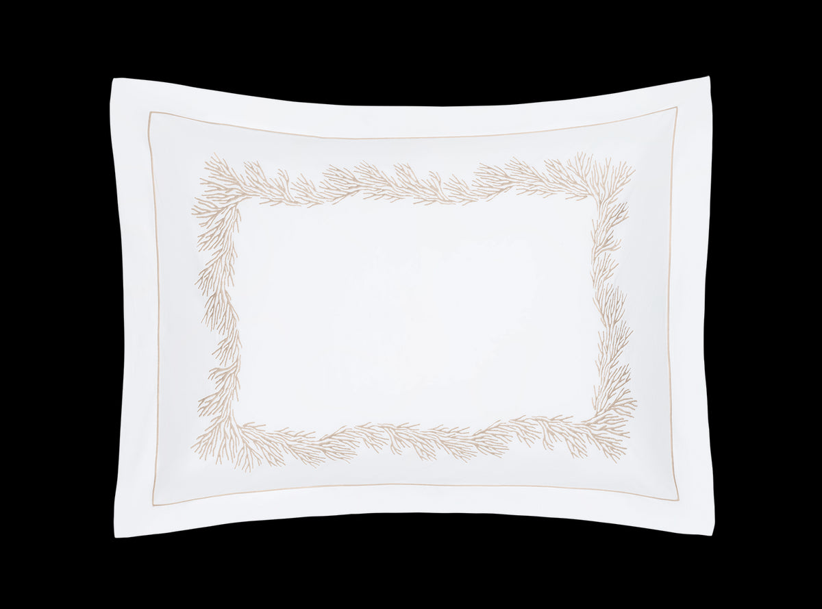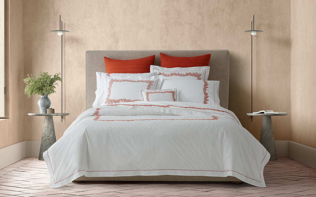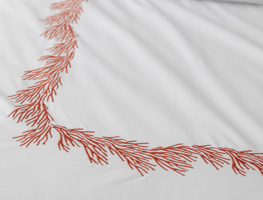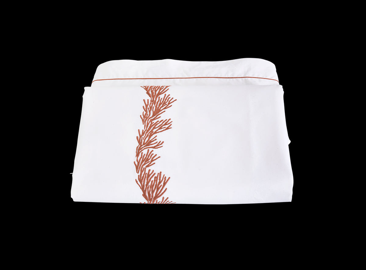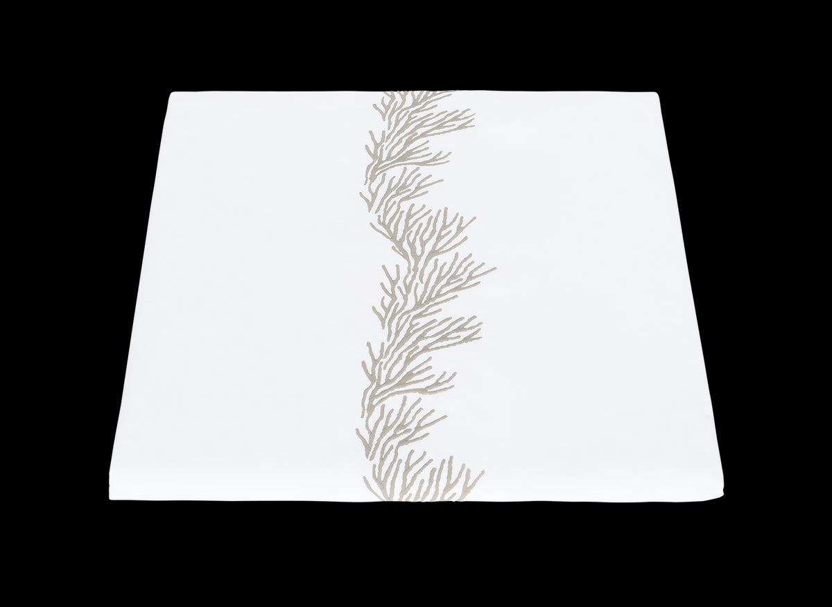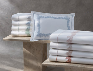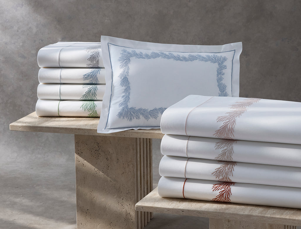 For nearly 100 years and three generations, Matouk has handcrafted luxury linens from the world’s finest materials. Their dedicated artisans in Fall River, Massachusetts are committed to creating the highest quality, most-loved bed, bath, and table linens for your home. Like the feathery coral found under the Pacific waters, the Atoll Collection features a small satin stitch border that gently flows over the crisp 520 thread count Ceylon cotton percale. Pair this collection with the coordinating Ceylon Fitted Sheet.