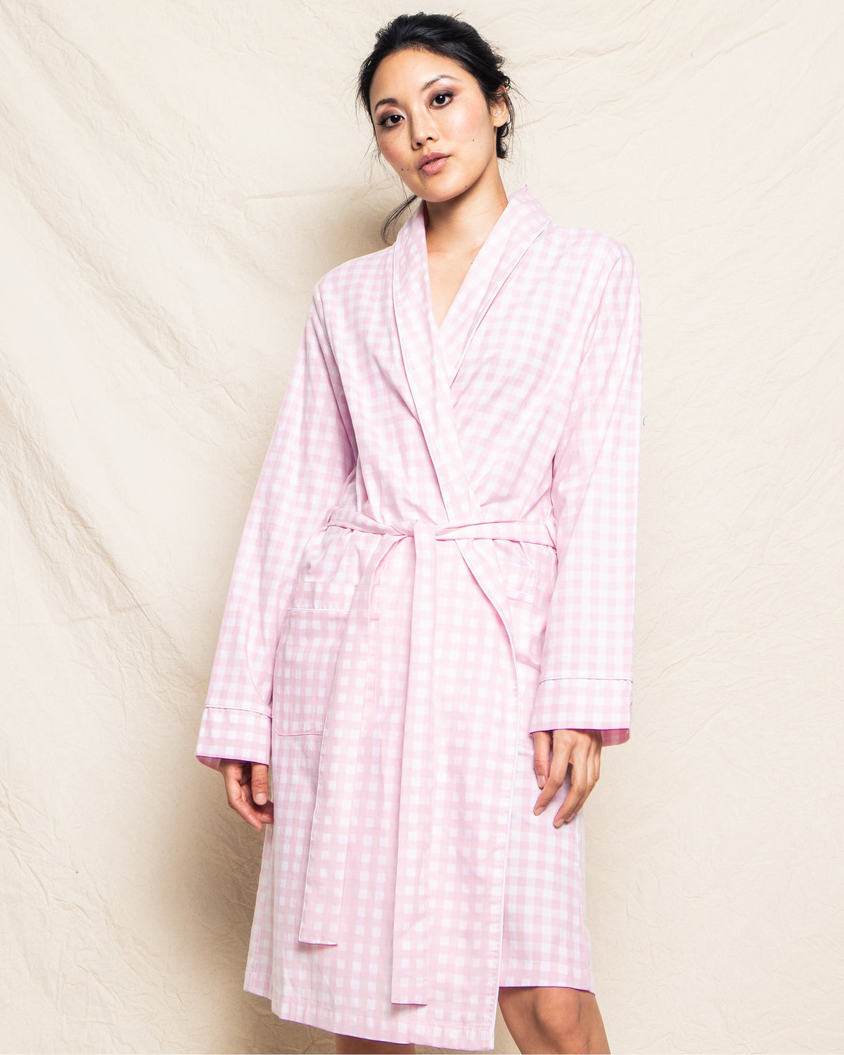 Petite Plume’s luxury sleepwear is a dream come true. Crafted in exquisite cotton, with the finest attention to detail, no chemicals, and classic silhouettes, Petite Plume delivers the utmost comfort and sophistication to every man, woman, and child who wears it. Made in a preshrunk, yarn-died fabric, and decorated with a timeless plaid, the Women’s Pink Gingham Robe is specially brushed so that every wash brings more coziness. Perfect for early mornings, bedtime, or really anytime.