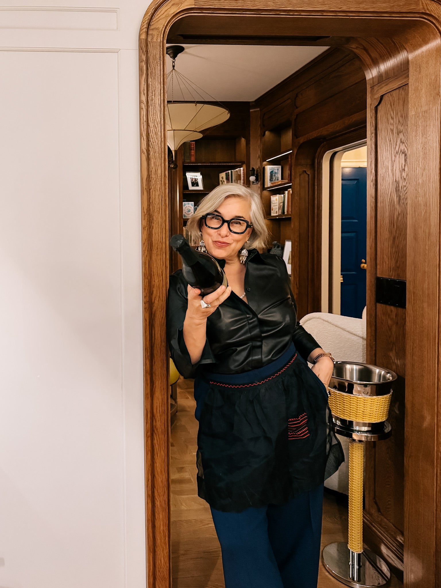 I believe to be a good hostess it is important to strike a balance between being fully prepared to receive guests and creating a relaxed and welcoming atmosphere. I always have a fully stocked bar with a few choices of ice so guests can make their favorite cocktails. I always fill the scullery sink with ice and stuff it with Champagne and wine. I pop ice buckets with additional bottles of Champagne in the library and dining room credenza for guests to discover as they wander. I also like to do a combination of ordering a few things in for ease—if I don’t hire a caterer—such as a beautiful charcuterie and cheese board. Then, I make crowd favorites such as sour cream and onion dip with ruffle potato chips and, of course, caviar!