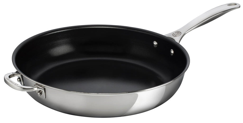 Recognized for its strength and durability, as well as its beauty and quality, Le Creuset produced the first enameled cast iron cookware nearly a century ago. A tradition of maintaining the finest culinary craftsmanship, combined with the latest innovations, means Le Creuset is known for blending classic form with real function and that it's made for home cooks and professional chefs alike. The 12.5" Nonstick Deep Fry Pan with Helper Handle is designed with extra depth, making it ideal for everything from sauces to stir-fry with minimal splatter. Its triple-layer construction features an aluminum core for superior heat distribution, yet the lightweight titanium-infused stainless steel exterior resists scorching and corrosion.