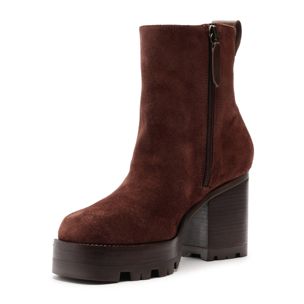 Founded in 1995 by Alexandre Birman, Schutz redefines attainable luxury with its stylish footwear. With each new release, the brand delivers of-the-moment collections, defined by confident, bold, designs around which entire outfits can be built. The 240 Suede Bootie in Root Brown makes a bold statement with a heavy sole that adds weight to every step, while the sleek suede finish brings elevated edge to a street-meets-rock sensibility.