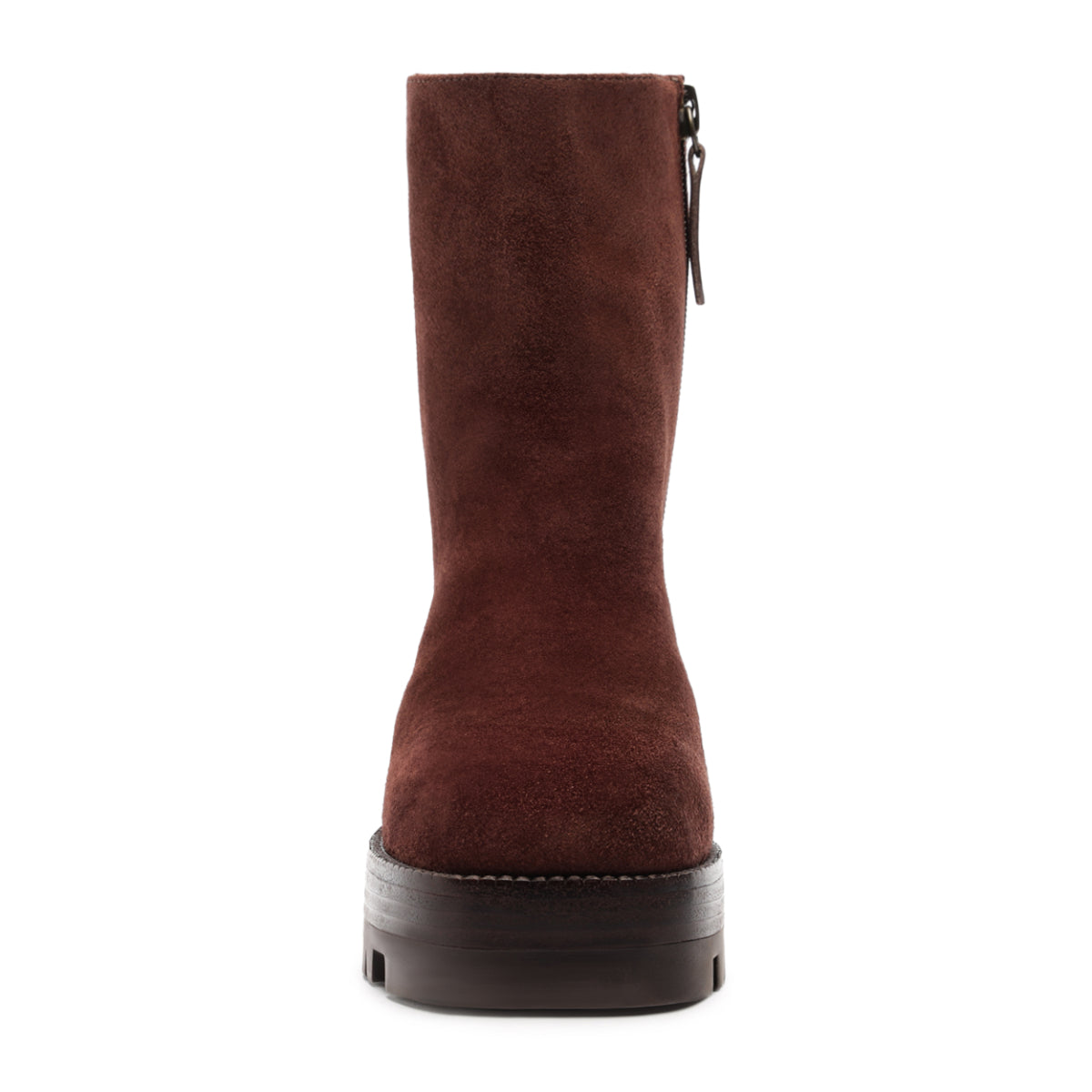 Suede upper. Man-made lining. Man-made sole. Heavy sole construction. Bootie silhouette.