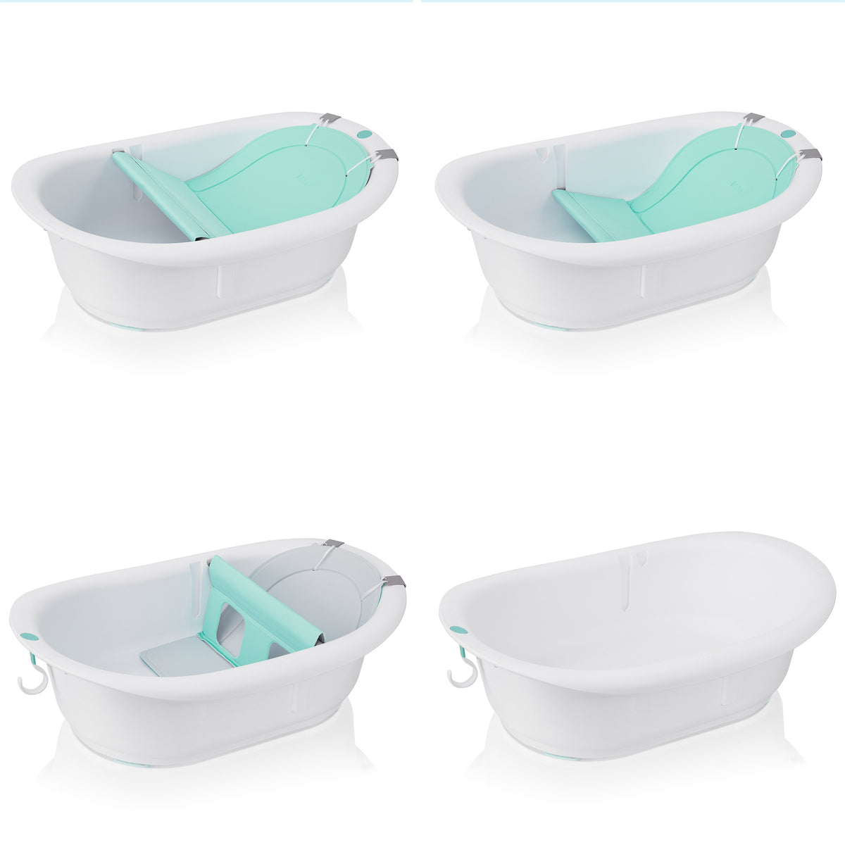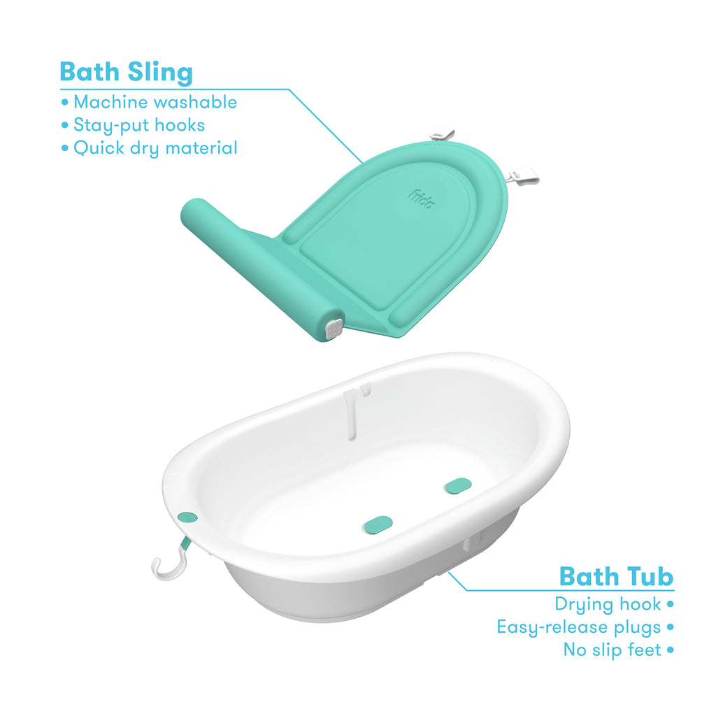 Frida Baby adopts a no-nonsense approach to everything related to babies and beyond, from care products and first aid to postpartum recovery and delivery kits. The brand playfully refers to many of its products as fuss busters. Its straightforward attitude and effective solutions have made it a cult favorite among parents everywhere. This clever tub has four positions that adjust to your growing baby. The two-sided hammock supports newborns; flipped a young infant can recline; Older babies will us the learning-to-sit seat, and, when they’re ready, sit up on their own as they soak. Easy-release plugs, a quick-dry hammock, and dry hooks make it easy to clean when bath time is done.