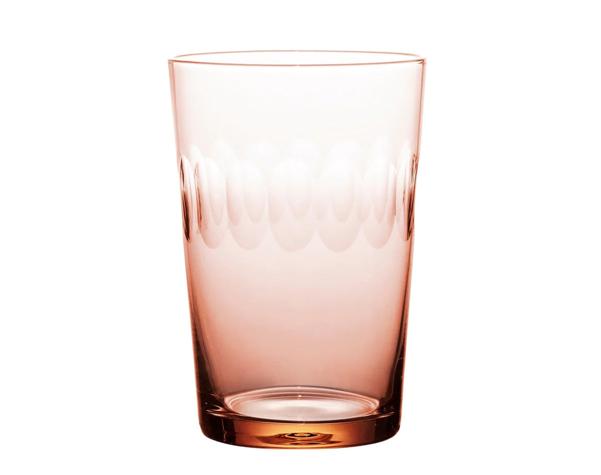 Founded in 2015 by former antiques dealers Camilla and Henry Davies, London-based The Vintage list reproduces the timeless glassware the Davies once found in English antique markets. Their hand-blown, engraved pieces turn any cocktail hour or meal into a special occasion, and yet these glasses are designed to be used every day, and sit beautifully in any contemporary setting. A classic presentation for everything from water to your favorite mixed drink, the Rose Tumblers With Lens Design, Set of 4 elevate not only your favorite drink, but your entire bar cart. Hand-engraved with a band of connecting spheres, these heighten every sip, and service.