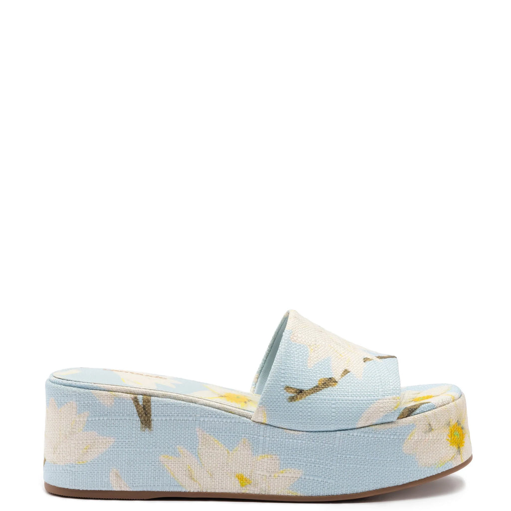 Bold colors, playful patterns, and chic silhouettes are hallmarks of Larroudé, a shoe brand born of the pandemic from industry veterans and husband-and-wife team Marina and Ricardo Larroudé. Manufactured in Brazil, Larroudé shoes are designed with the consumer and community in mind, never compromising on style, fit, and quality. The Alex Flatform Mule in Maya Printed Raffia channels a whimsical, warm-weather spirit. Crafted in the season’s Lotus print, this easy slide sits atop a flatform base that’s both comfortable and eye-catching.