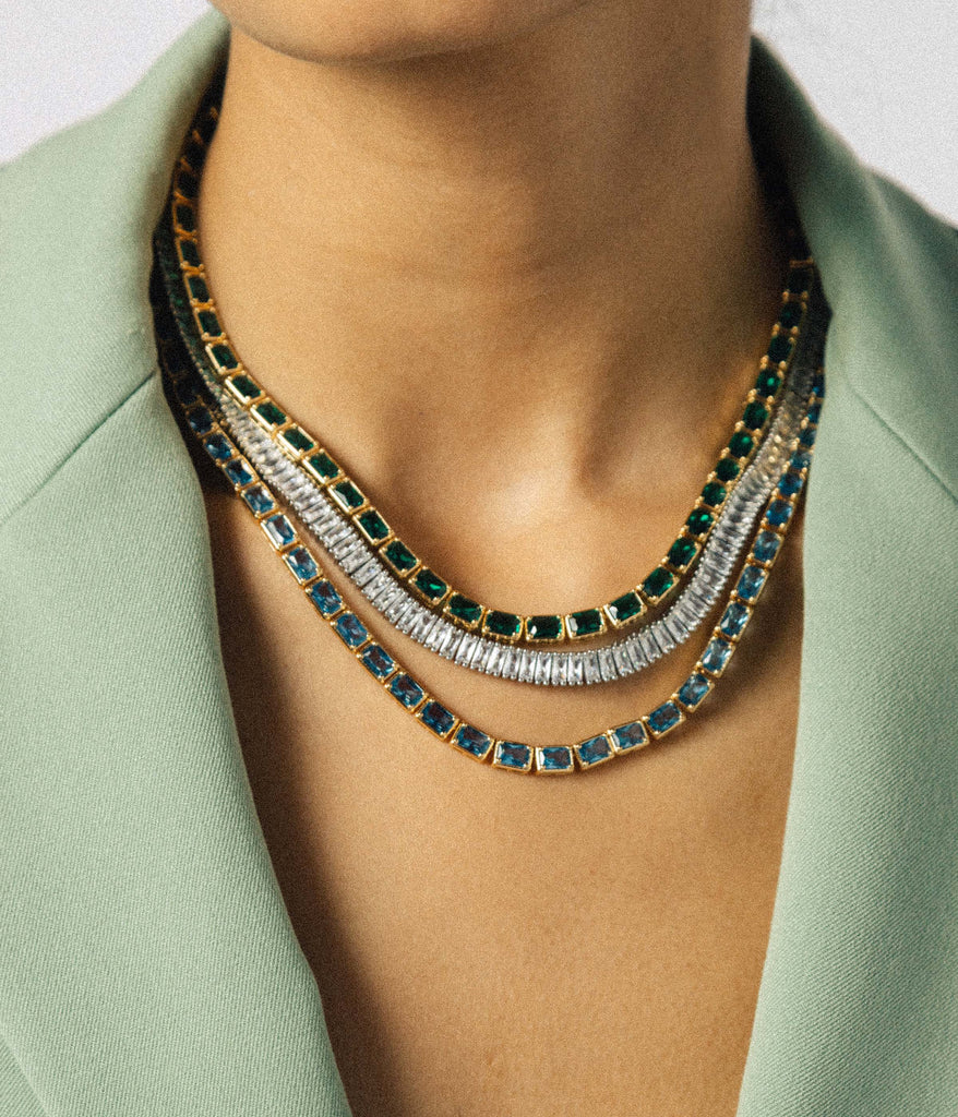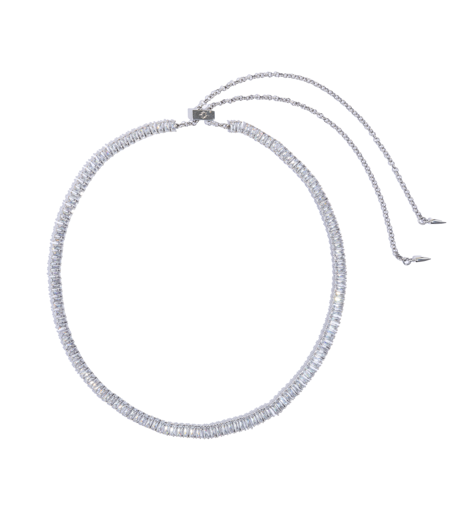 Loren Barham founded her jewelry line in 2005 as a means to reconnect with the vintage jewels that inspired her as a child. Today, the dynamic, artistic, original pieces of Loren Hope, designed at their flagship store in Newport, Rhode Island, serve as a bridge between nostalgia and thoroughly modern women everywhere. The Alice Tennis Slider Necklace reimagines a timeless silhouette with bold, baguette-cut crystals that deliver luminous, everyday sparkle. Designed with a sleek slider clasp for effortless adjustability, it can be worn as a clean, standalone strand or layered with other Loren Hope favorites for a touch of modern glamour.