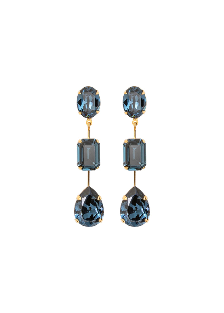 “Everything has a story to tell,” says Jennifer Behr, the founder of her namesake luxury hair accessory brand that has blossomed into one of New York City’s foremost ateliers for jewelry, as well as bridal. In every crystal, pearl, and ribbon, you’ll find the utmost quality and a sense of romance, as each piece reveals a modern interpretation of centuries-old regalia. The Allanah Earrings in Sapphire draw inspiration from Renaissance jewels, showcasing three luminous glass crystals in graduated shapes that catch and reflect the light with striking brilliance. Handcrafted in New York, these lightweight statement drops combine opulent scale with effortless wearability.