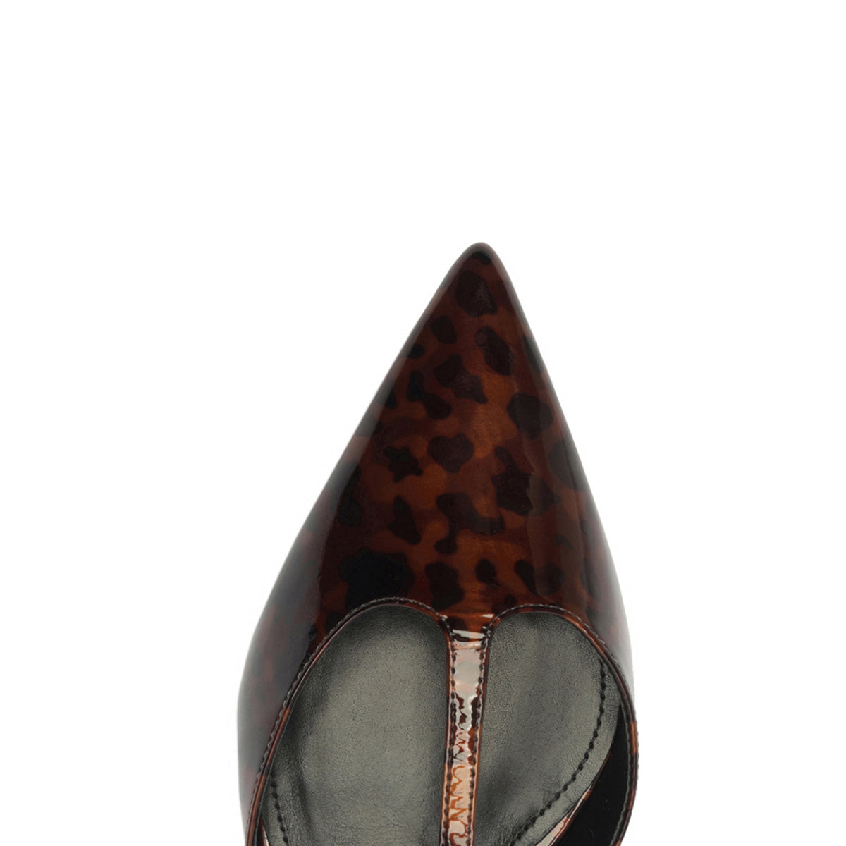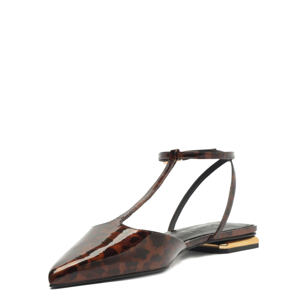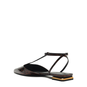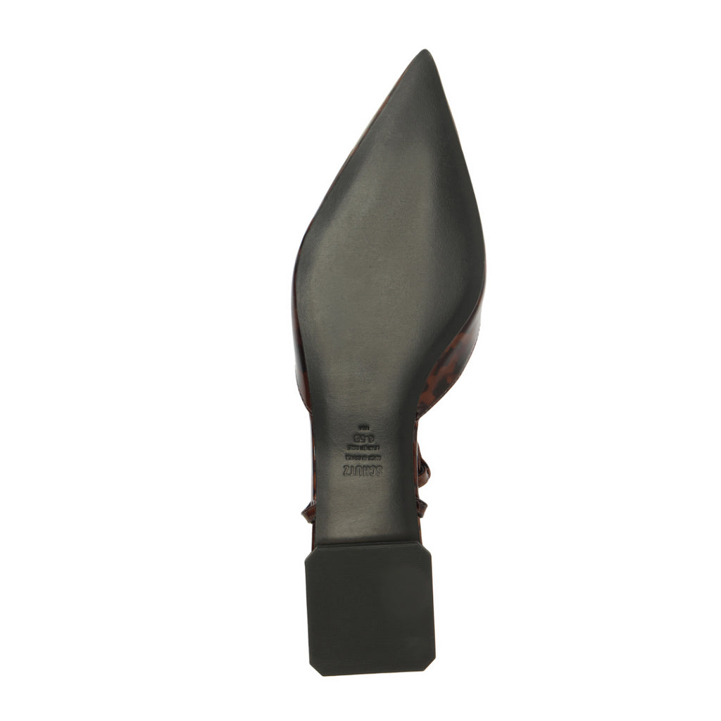 Patent upper. Man-made lining. Leather sole. 0.7" heel height.