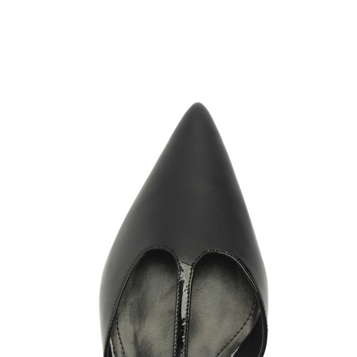 Patent upper. Man-made lining. Leather sole. 0.7" heel height.