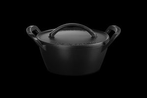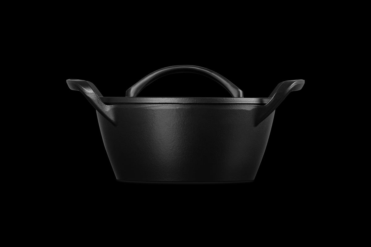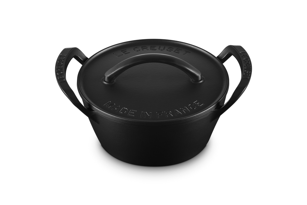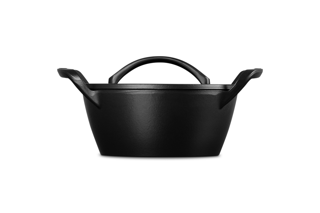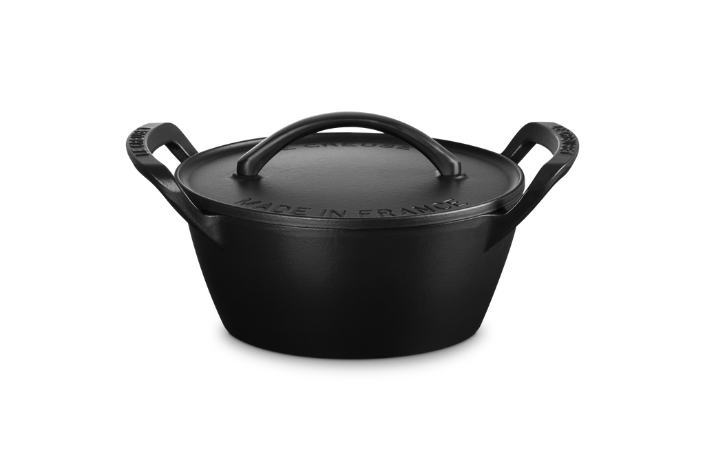 Crafted from durable enameled cast iron developed specifically for outdoor use, offering unmatched heat retention and even cooking. Finished in rugged matte black enamel that is easy to clean and requires no seasoning. Raised loop handles provide a secure grip when maneuvering over grills or campfires. The gently domed lid promotes moisture circulation, echoing the design of Le Creuset’s classic Dutch Oven. Compatible with open flame, charcoal, and gas grills.