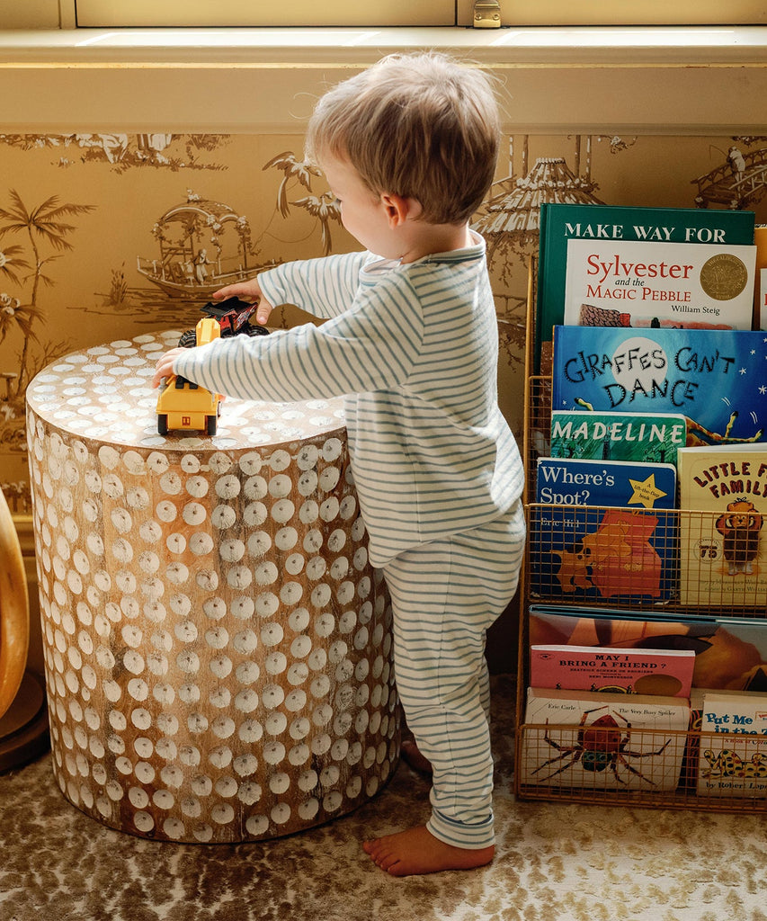 Oso and Me makes children’s clothing that’s easily worn, easily washed, and designed to make getting dressed fun. Sustainably crafted with growing kids in mind, these high-quality pieces are made with an eye for detail and built to last. The Andy Baby Legging in Dusty Blue Mini Stripe is a limited-edition style cut from the brand’s ultra-lightweight Float Jersey™—a soft, breathable fabric that offers gentle stretch and lasting comfort. Featuring an easy pull-on waistband, contrast piping, and cuff-able hems to grow with your little one, this legging brings charm and practicality to every day.