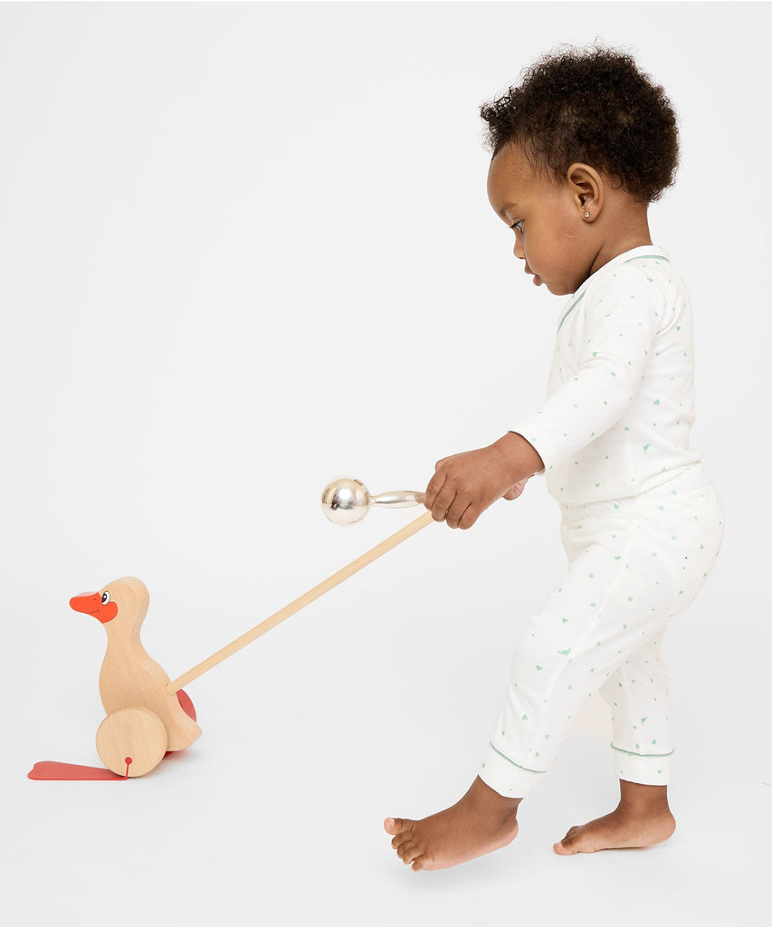 Oso and Me makes children’s clothing that’s easily worn, easily washed, and designed to make getting dressed fun. Sustainably crafted with growing kids in mind, these high-quality pieces are made with an eye for detail and built to last. The Andy Baby Legging in Seafoam Hearts is a limited-edition design made from the brand’s ultra-lightweight Float Jersey™—a soft, breathable organic cotton that keeps babies comfortable all day long. Featuring an easy pull-on waistband, cuff-able hems for room to grow, and contrast piping for a playful finish, this legging is an effortless everyday essential.