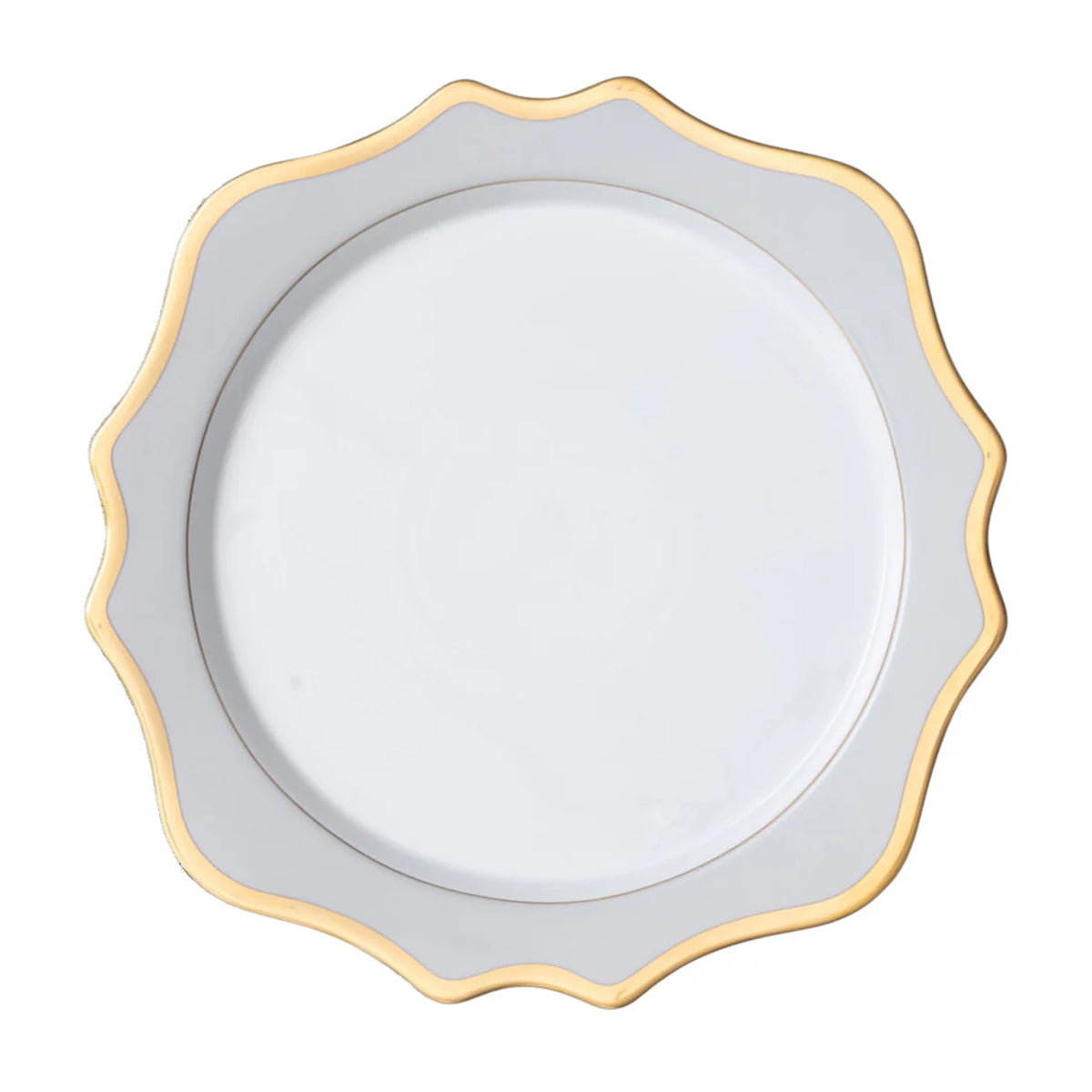 Inspired by 18th Century botanical illustrators, Hungarian designer Anna Weatherley creates hand-painted porcelain pieces to adorn the home, from dinnerware to stunning tablescapes. The Anna’s Palette Charger in Grey/Gold adds a touch of elegance to any setting. Boasting a grey trimming and golden rim, this plate is made to serve and entertain in style.