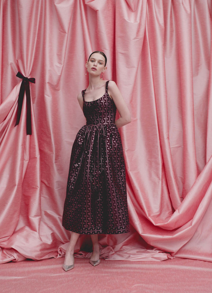 56% recycled polyester, 15% metalized polyester, 15% polyester, 14% cotton. Lining: 100% silk. Concealed zip along back. Fully lined. Made in the USA.