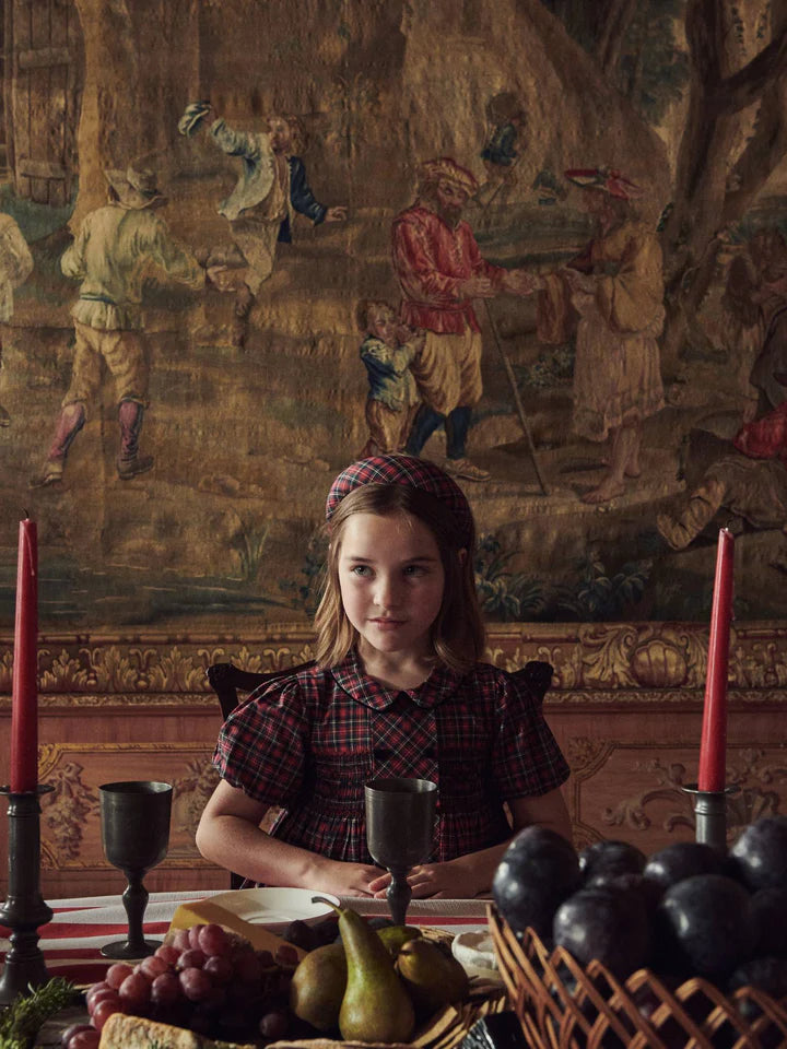Heritage is at the heart of La Coqueta, with Founder and Creative Director Celia Muñoz's designs developing from her Spanish roots and the traditional clothing she grew up in. Known for rich embroideries and hand smocking, heavy collars, and decorative details, every collection manifests in elaborate yet elegant designs. Crafted from BCI and OEKO-TEX-certified cotton and decorated with a charming red tartan check, the Arcadia Girl Hand-Smocked Dress is an iconic silhouette, perfect for the festive season. The bodice is shirred across the waist and finished with intricate honeycomb smocking and contrasting embroidery across the empire line waist, which is completed by hand and can take up to seven hours per dress. Special details include the short capped sleeves, a long, floaty skirt, and a charming Peter Pan collar traced with a black velvet trim for a statement finish. It fastens at the back with a button placket and is fully lined in pure cotton for extra comfort and coverage