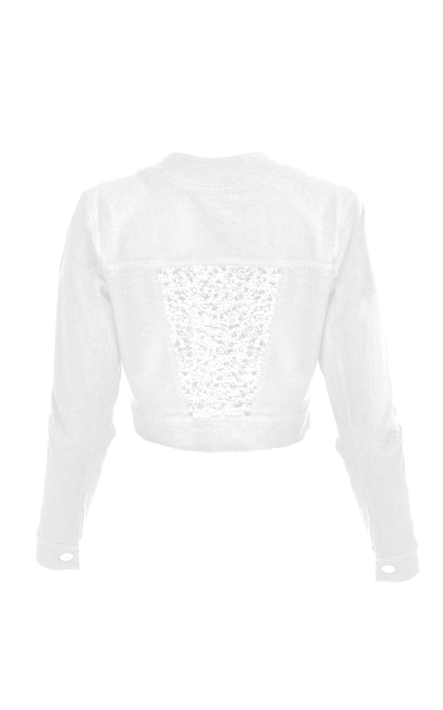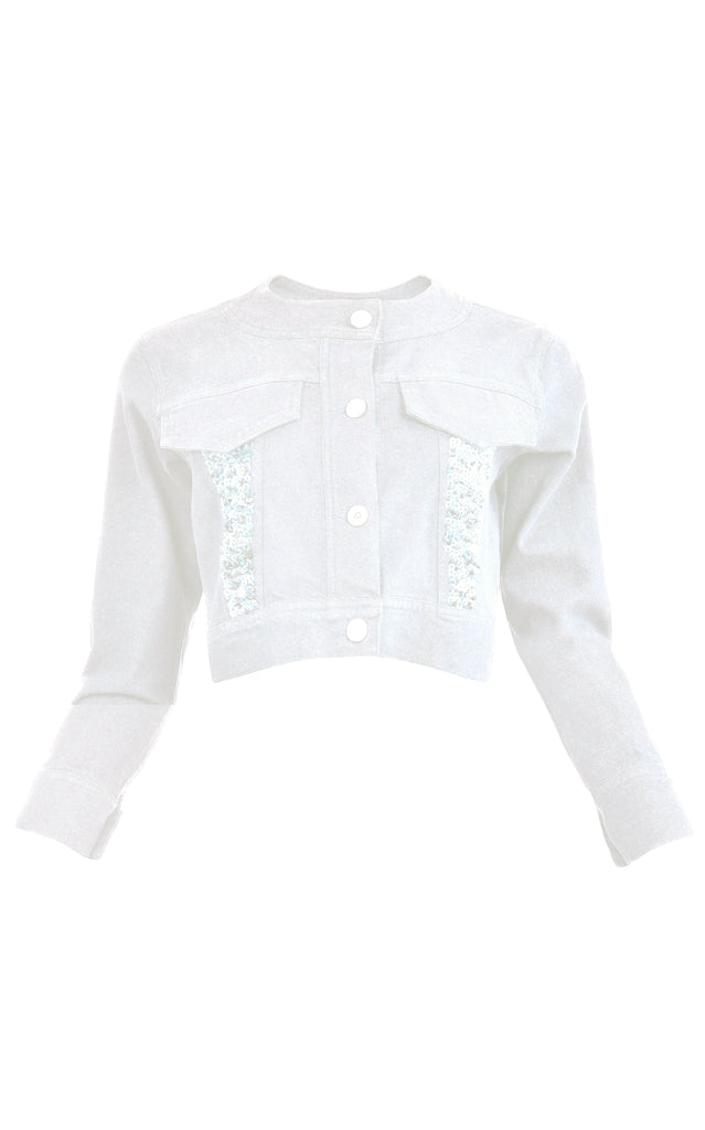 Cropped jacket with floral appliqués. Structured silhouette with textural detailing. Made in Colombia.