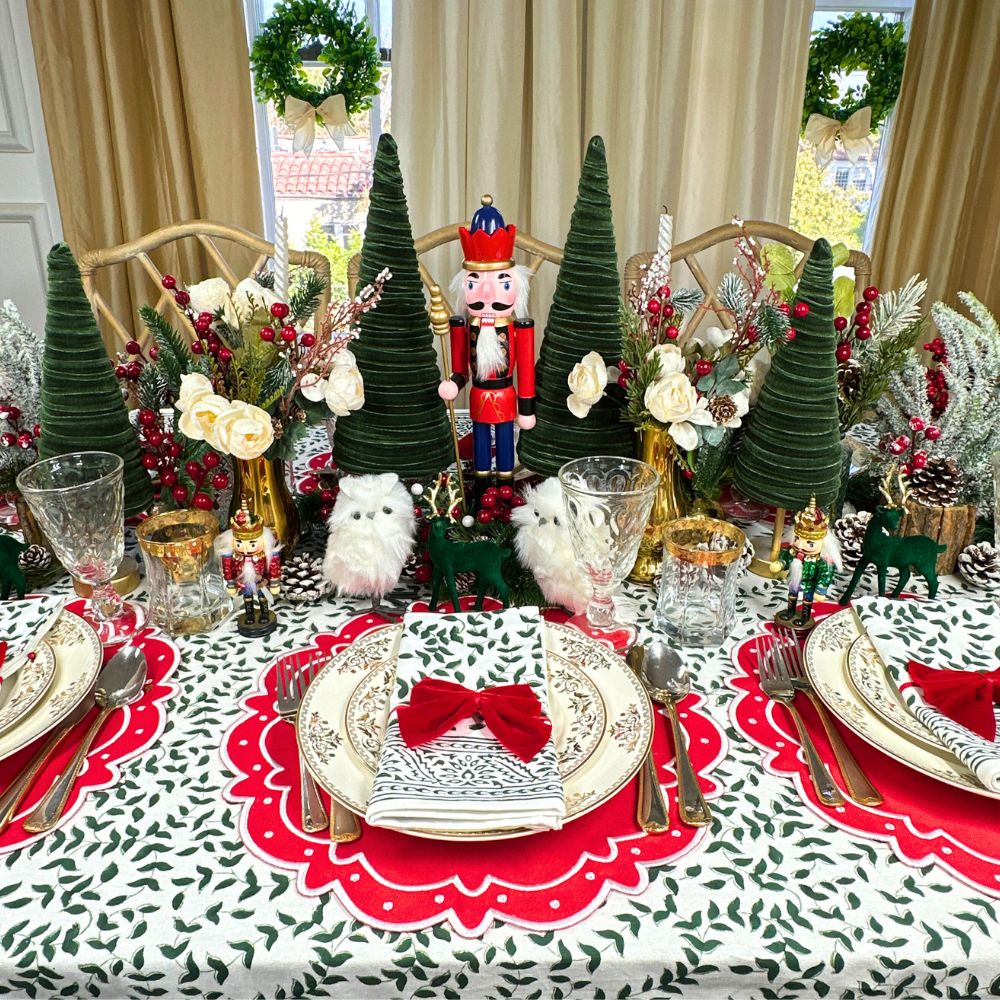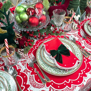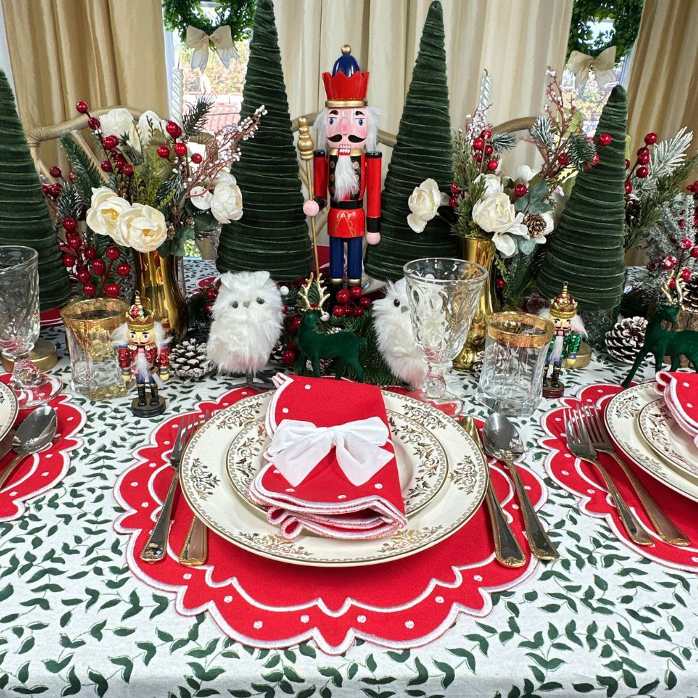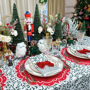 Swiss linen, fine cotton and tasteful refinement define Flying Sheep Country’s linens and tabletop items. Founded by two sisters who spent their youth spotting sheep in the English countryside, the brand celebrates both luxury and whimsy in its vibrant prints, fine embroidery and traditional artisanship. The Ava Placemat in Red, Set of 4, captures a celebratory spirit with its graceful white embroidered dots on rich red cotton. Festive yet refined, these placemats bring warmth and charm to gatherings, setting the stage for joyful occasions and memorable meals.