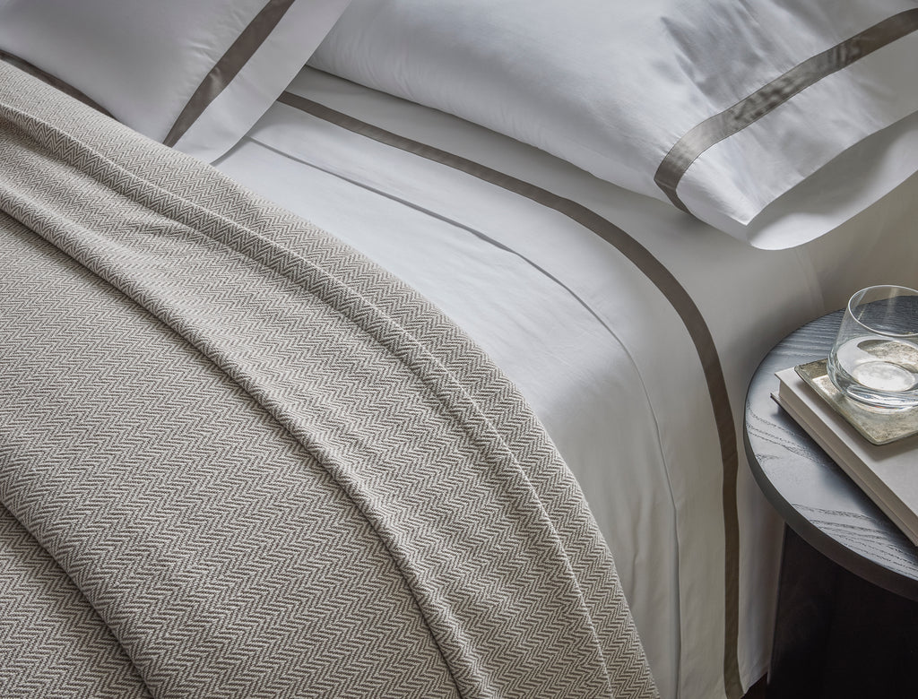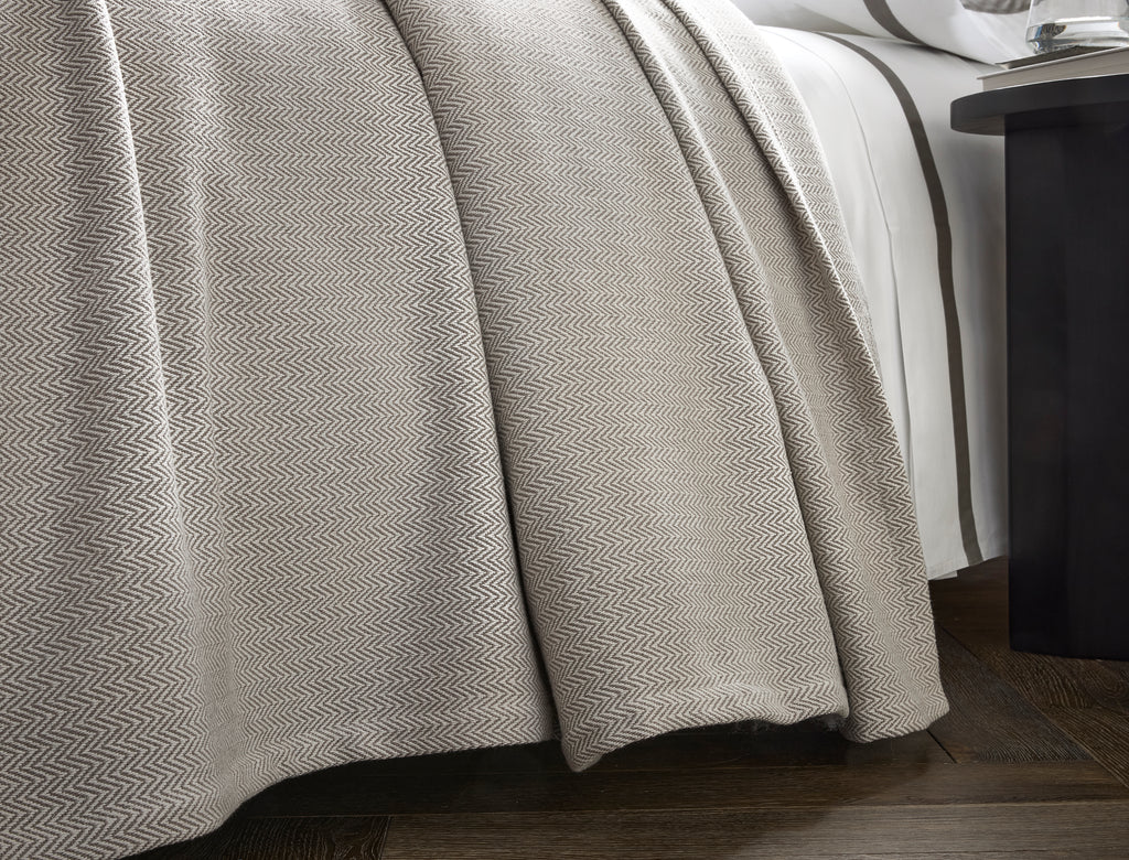 The Avalon Blanket brings a refined, understated elegance to the bed, defined by its intricate chevron weave and softly tailored one-inch hem. Woven from premium cotton in subtle tonal hues over an off-white ground, it offers a smooth hand and a versatile, year-round weight. Whether layered beneath a duvet or draped at the foot of the bed, Avalon lends a quiet, polished sophistication to any setting.