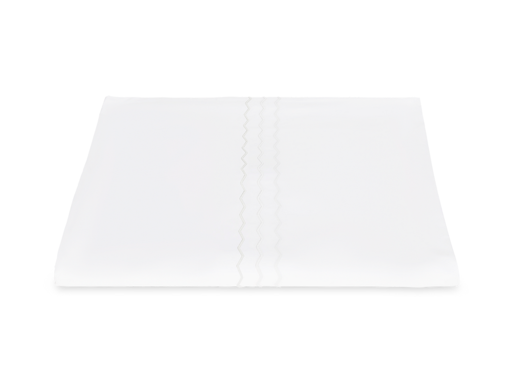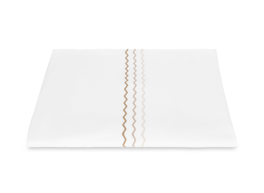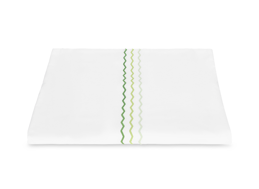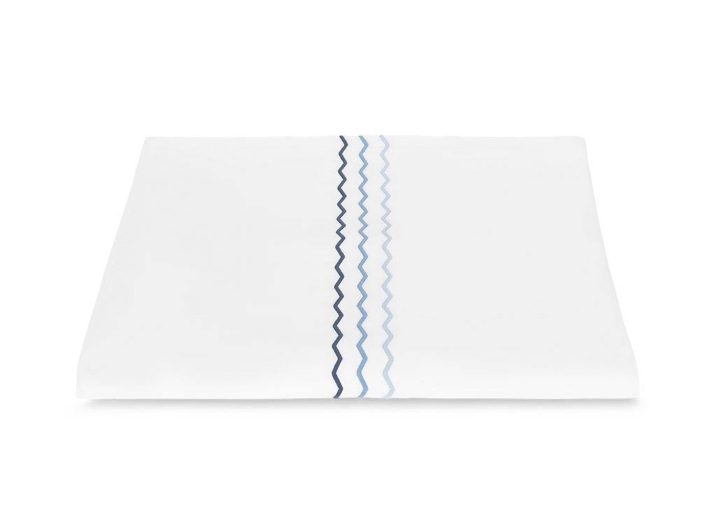 The Axel Duvet Cover brings a spirited, contemporary edge to the bed, distinguished by its playful zigzag embroidery rendered in vibrant, thoughtfully paired color combinations. Woven from long-staple cotton percale for a smooth, exceptionally soft hand, it adds crisp, graphic definition to the modern bedroom. Inside corner ties and a hidden zipper closure ensure a clean, tailored finish. Pair with the coordinating Sierra Fitted Sheet for a cohesive, elevated look.
