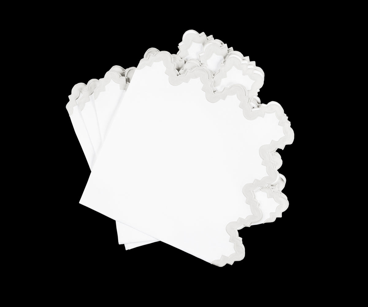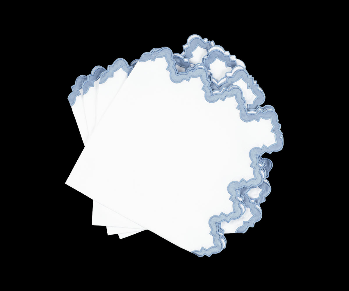 For nearly 100 years and three generations, Matouk has handcrafted luxury linens from the world’s finest materials. Their dedicated artisans in Fall River, Massachusetts are committed to creating the highest quality, most-loved bed, bath, and table linens for your home. The brand’s signature Aziza appliqué is now a brilliant border for this table linen collection. Inspired by the elegant geometry of Moroccan tiles, Aziza’s undulating pattern, cut from the brand’s Nocturne sateen and applied on a crisp white linen, is sure to make any well-set table come alive.