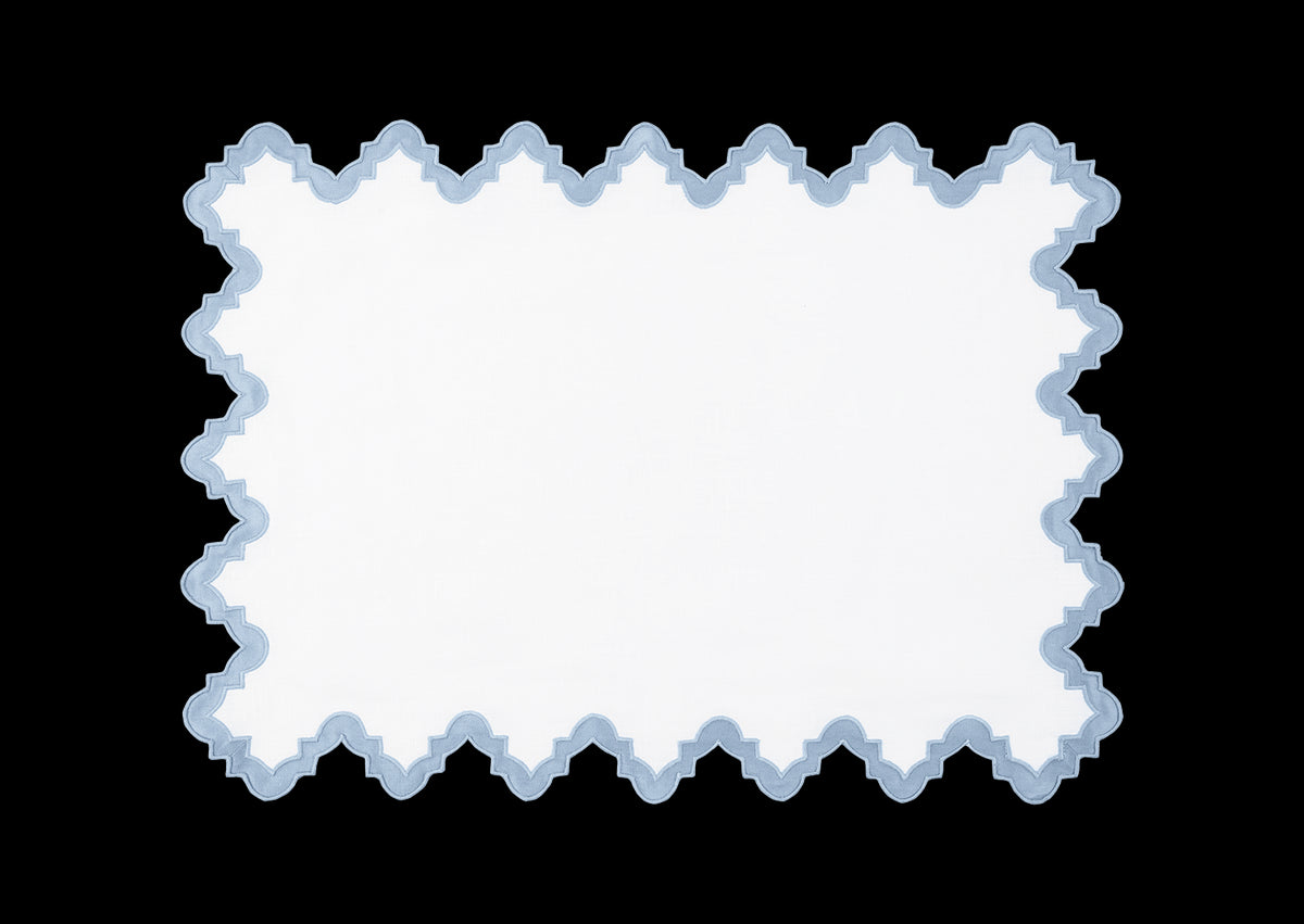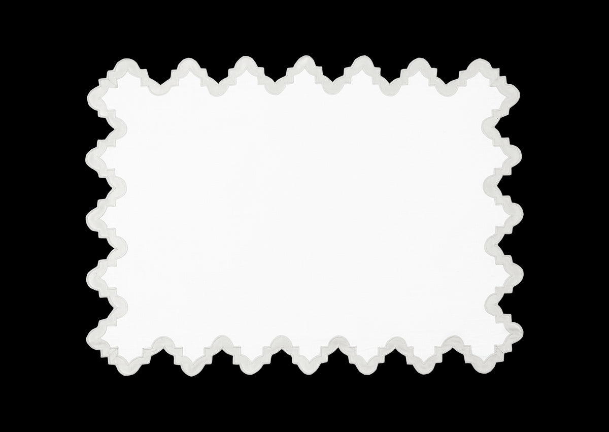 For nearly 100 years and three generations, Matouk has handcrafted luxury linens from the world’s finest materials. Their dedicated artisans in Fall River, Massachusetts are committed to creating the highest quality, most-loved bed, bath, and table linens for your home. The brand’s signature Aziza appliqué is now a brilliant border for this table linen collection. Inspired by the elegant geometry of Moroccan tiles, Aziza’s undulating pattern, cut from the brand’s Nocturne sateen and applied on a crisp white linen, is sure to make any well-set table come alive.