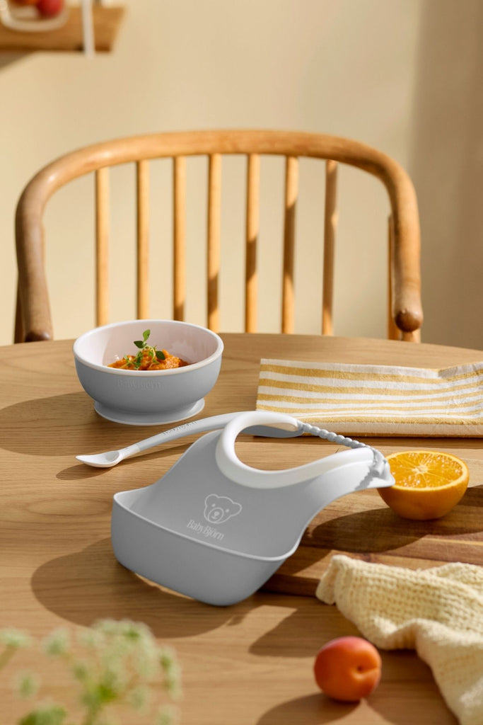 Rooted in Swedish design and a family-first ethos, BabyBjörn crafts intuitive, durable essentials that nurture the bond between parent and child while celebrating the joy of early moments. Designed for babies beginning their journey with solid foods, the Baby Feeding Set in Gray, Set of 3, combines thoughtful functionality with modern simplicity. The sturdy bowl is easy to hold one-handed, the long-handled spoon helps with guided feeding, and the adjustable bib catches every spill for a calmer, cleaner mealtime.
