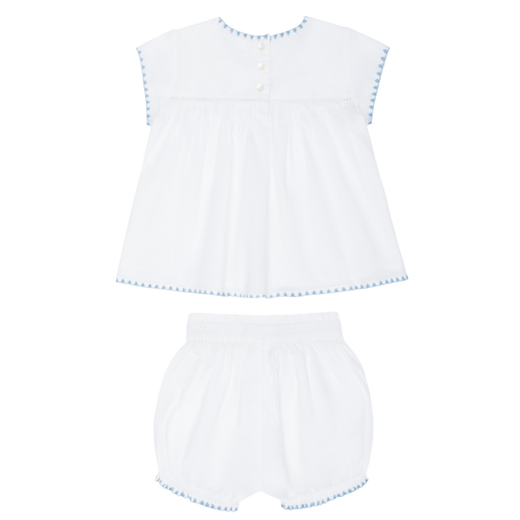 The Baby Girls’ White Embroidered Top and Bloomer Set blends breezy comfort with sweet, thoughtful detailing. Designed for warm, sun-filled days, the lightweight top pairs effortlessly with pull-on bloomers for an easy, polished look. Wear it as a set or mix and match with other Minnow favorites.