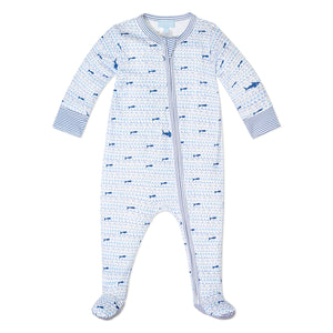 Designed with a mom’s love and made with care, Boston-based Joy Street produces small-batch kids clothes that look classic from afar, but delight in details. Crafted in luxurious 100% Peruvian pima cotton in a female-run factory, every print is hand-drawn by the brand’s founder, a new mom who prizes fit and quality above all else, and isn’t afraid of a little fun. The Baby Sharks Zip Onesie in Blue features an adorable ocean-themed print with playful waves and sharks—complete with a convenient two-way zip for easy diaper changes.