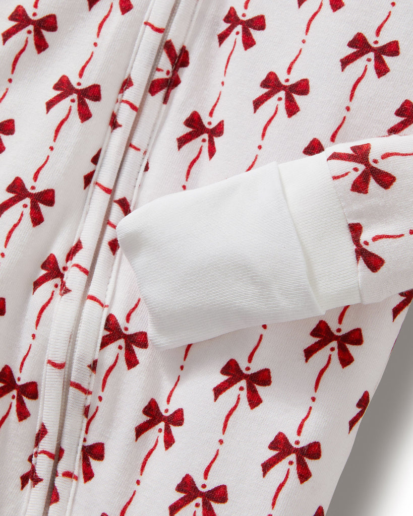 Petite Plume wishes you a “bonne nuit,” and in their luxury sleepwear, it’s hard not to oblige. Cheery red bows neatly line the Baby’s Pima Peekaboo Romper in Blissful Bows—an elegant holiday keepsake. This snuggly one-piece is designed to cocoon little ones in buttery softness, while thoughtful details ensure lasting comfort as they grow.