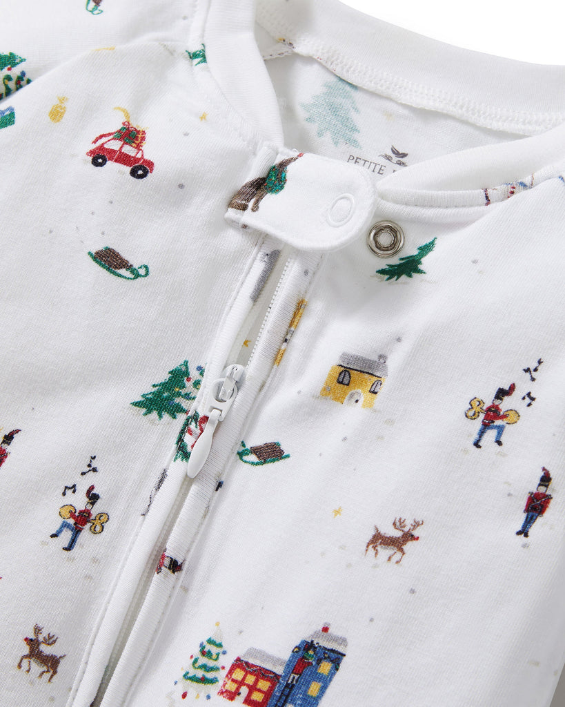 Petite Plume wishes you a “bonne nuit,” and in their luxury sleepwear, it’s hard not to oblige. The joyful sights of this peaceful holiday village will take you down memory lane in the Baby’s Pima Peekaboo Romper in Holiday Town. This snuggly one-piece is designed to cocoon little ones in buttery softness, while thoughtful details ensure lasting comfort as they grow.