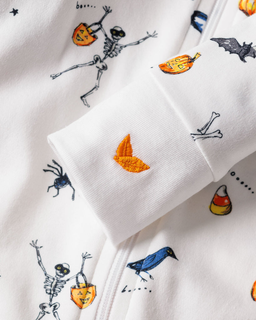 Petite Plume wishes you a “bonne nuit,” and in their luxury sleepwear, it’s hard not to oblige. Step into a world of enchantment and mischief with classic Halloween icons that will ignite your festive spirit. Mischievous ghosts playfully float around, smiling owls beckon you with their glowing faces, while colorful candy corn adds a touch of sweetness. The Trick or Treat print echoes all of the nostalgia and excitement of October 31, transporting you back to magical nights of childhood. The bestselling Pima snug fit design will keep you comfortable as temperatures dip.