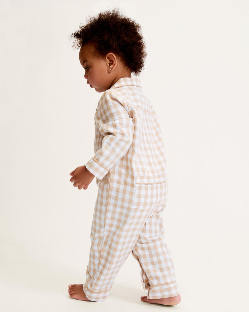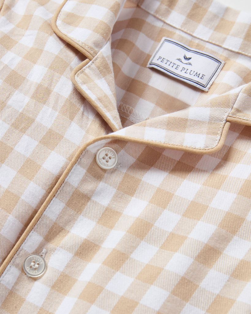 Petite Plume wishes you a “bonne nuit,” and in their luxury sleepwear, it’s hard not to oblige. The end of summer does not mean you have to retire your gingham. This romper is made of the softest brushed fabric which will allow your little one to walk, crawl, or relax in comfort. The sweetly piped back pocket is perfect for monogramming.