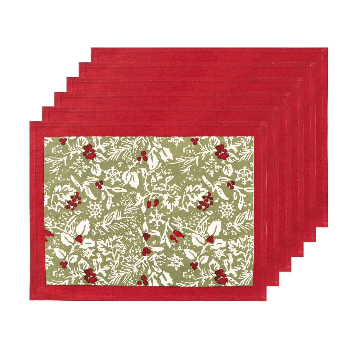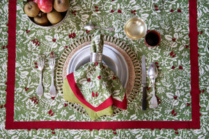 Idyllic landscapes, sumptuous colors, and the vibrant beauty of Southern France describes Couleur Nature. This brand of hand-painted table linens aims to bring a Provençal sense of effortlessness, rich culture, and joie de vivre to your life and home—no matter where you live. The Baies de houx Mats in Red & Green, Set of 6 adorned with delicate holly motifs in vibrant red and lush green, embodies the warmth and elegance of a Provencal holiday gathering. Ideal for creating cherished memories around your festive table. Designed exclusively for Couleur Nature by Parisian artist Bruno Lamy.