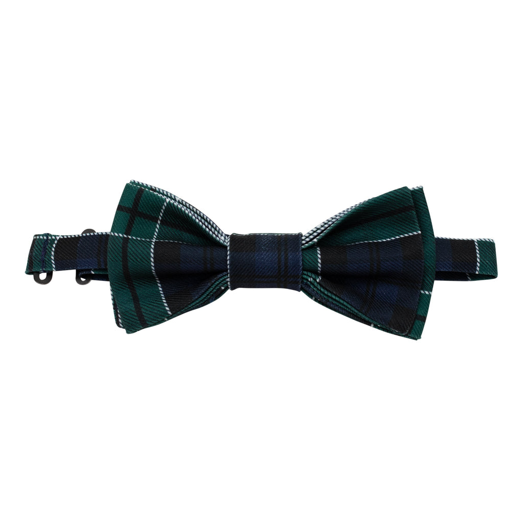 Green and navy plaid. Pre-tied bow. Adjustable strap for comfort. Coordinates with all Newbury Tartan styles.