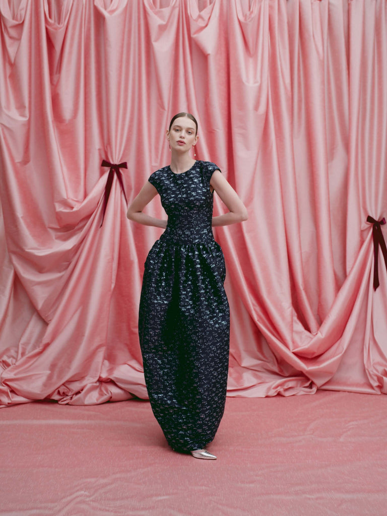 52% recycled polyester, 47% metalized polyester, 1% polyester. Lining: 100% silk. Concealed zip along back. Fully lined. Made in the USA.
