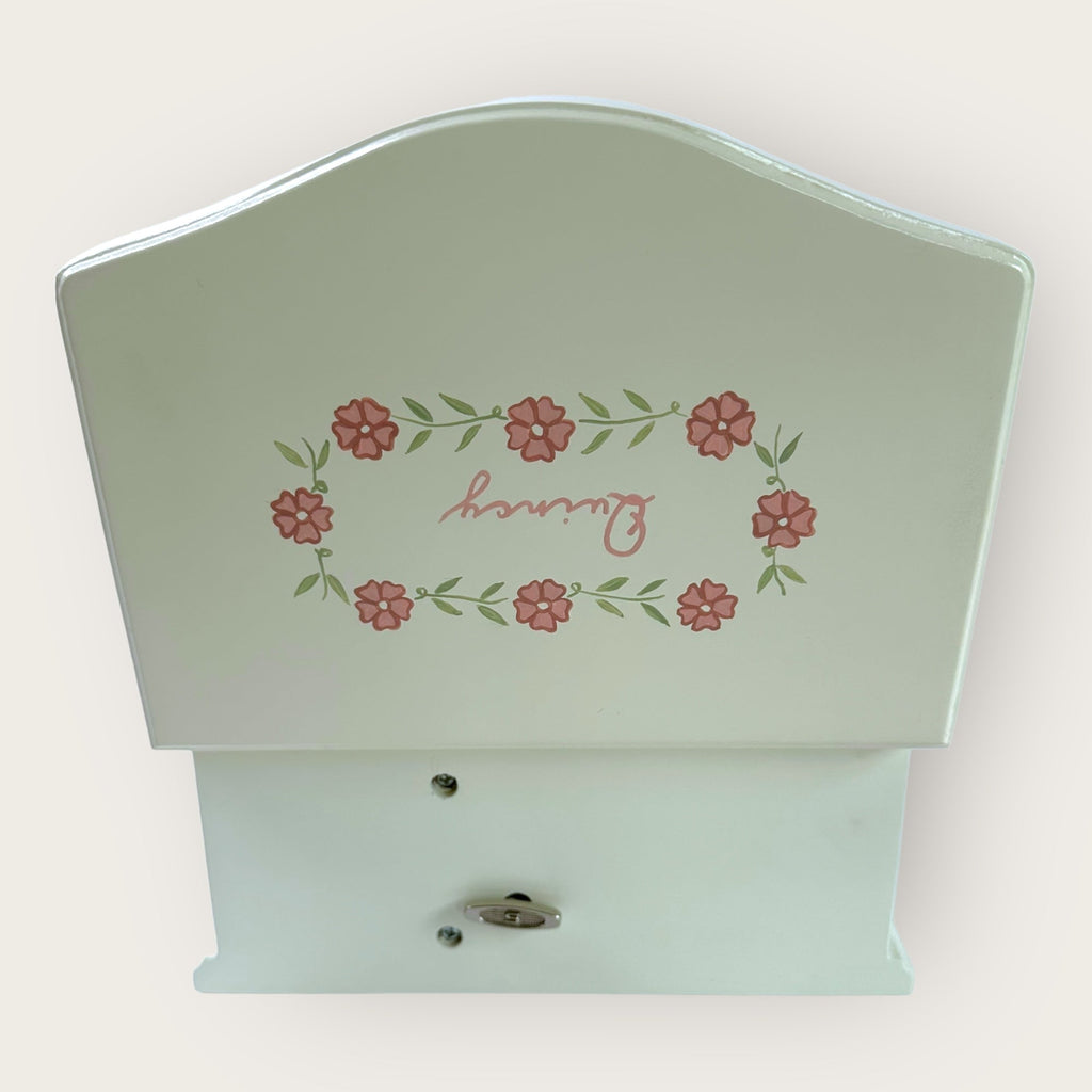 The Musical Ballerina Box in Pink Floral is a beautifully hand-painted wooden jewelry box featuring a wind-up mechanism that brings the ballerina to life when opened. A charming keepsake piece, it combines delicate illustration with timeless functionality. Inside, a soft grey velvet lining and thoughtfully designed compartments provide space for rings, jewelry, and treasured keepsakes. Each box arrives in a smart branded lidded gift box, making it wonderful for gifting.